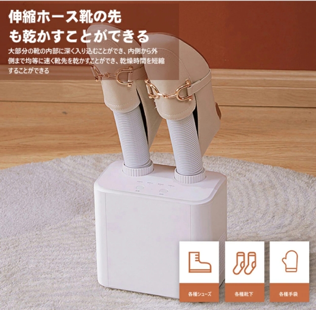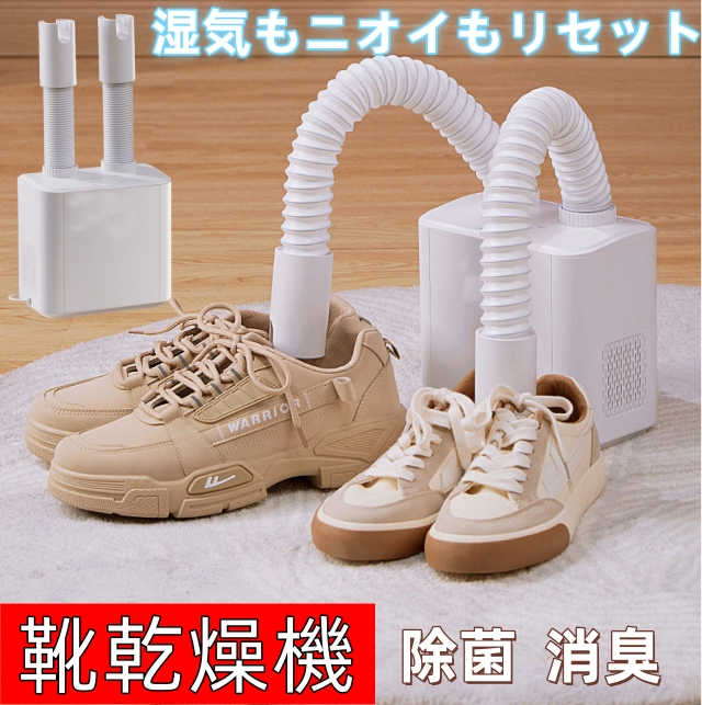 靴乾燥機 布団乾燥機 タイマー機能 シューズ乾燥機 靴脱臭機 くつ乾燥機 オゾン 伸縮調整 タイマー機能【布団2組・靴2組対応 ツインホース】衣類乾燥 ふとん乾燥機 除湿 梅雨対策 スキーブーツ/スニーカー/長靴 PSE認証 ホワイト