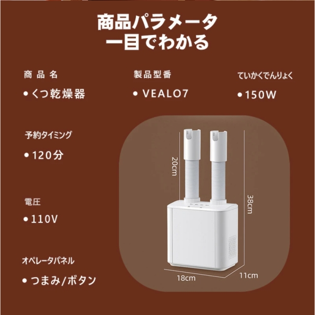 商品サイズ:11D * 18W * 38H cm 、ツインホースが伸縮調整可能