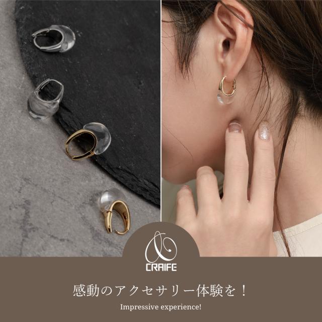 ピアス フープ 金属アレルギー対応 18Kコーティング キャッチレス レディース 大人 シンプル モダン エレガント かわいい クリア 透明 ジュエリー ゴールド シルバー 送料無料 プチプライス高見え CRAIFE