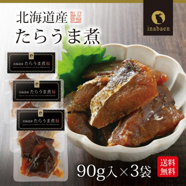 たらうま煮 90g 3個セット 北海道産 おかず がごめ昆布 ご飯のお供 和食 惣菜 和惣菜 おつまみ 保存料化学調味料不使用 メール便 送料無料