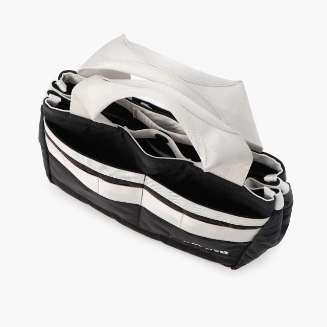 | "普段使いもしやすい、落ち着いたカラーリングは別注ならでは。軽やかさも使い勝手の良さをバックアップ。 こちらはデイリー使いもしやすい人気のカートトートです。ブラックやシルバーを基調としたクールな色合いで、日常のあらゆるスタイルにフィットします。 【オススメポイント】 -ルックスと強度にこだわったオリジナルの素材- ・100デニールのコーデュラナイロンをドビー織機にてマイクロリップに織り上げた、BRIEFING GOLFオリジナルの素材をメインに使用。 ドビー織機を用いることで凹凸のある織柄を表現され、素材の持つ表情が存在感を発揮。 さらにボンディング加工によって、生地の柔らかみが生まれるだけでなく、保護性も向上。 撥水加工を施すことで、雨や汚れ等にも強い仕上がりとなっている。 -使いやすいシンプル構造- ・メイン収納部はドットボタン間口で、中身の出し入れがスムーズです。 ・底マチがあり、荷物がたっぷり入って、置いたときに自立します。 ・内外でスコアカードやスマートフォンなどを入れられるポケットを充実させました。 ・フロントには、BRIEFINGを象徴するレッドステッチ入りのウェイビングテープをあしらっています。" |