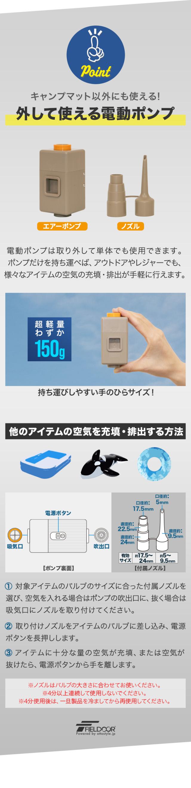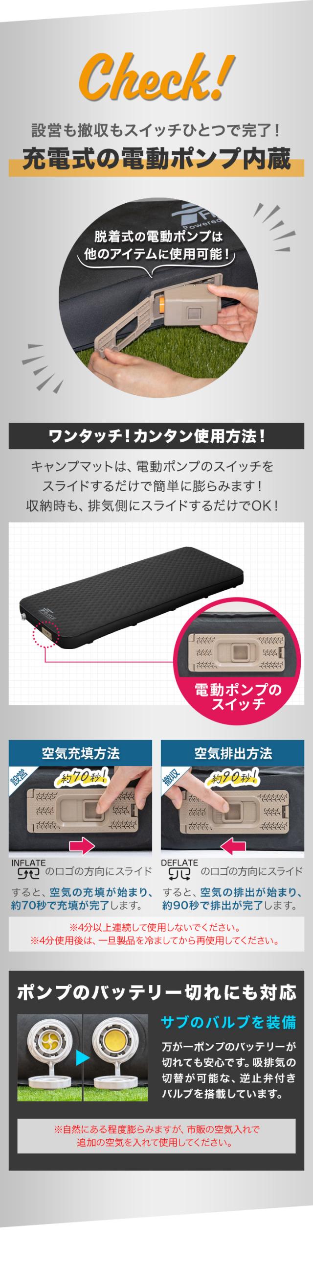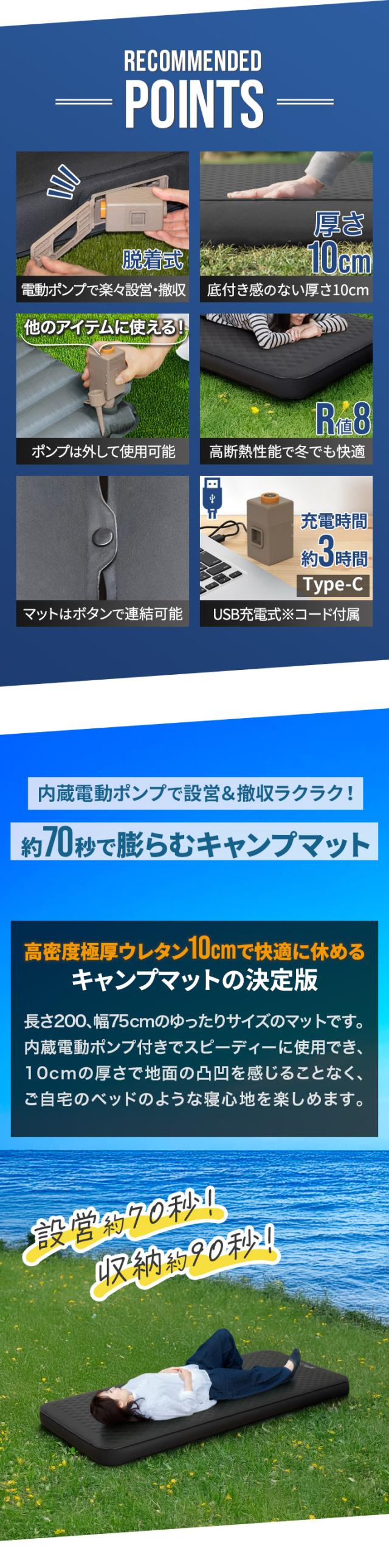 | 商品詳細(USB充電式電動ポンプ内蔵インフレータブルキャンプマット) |