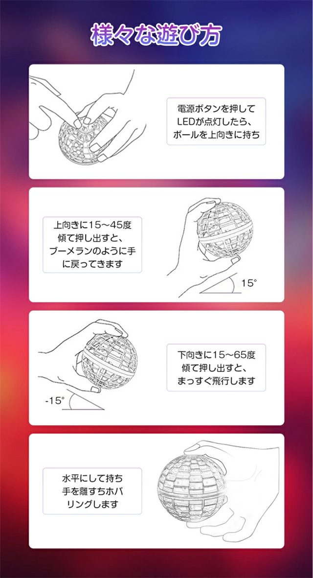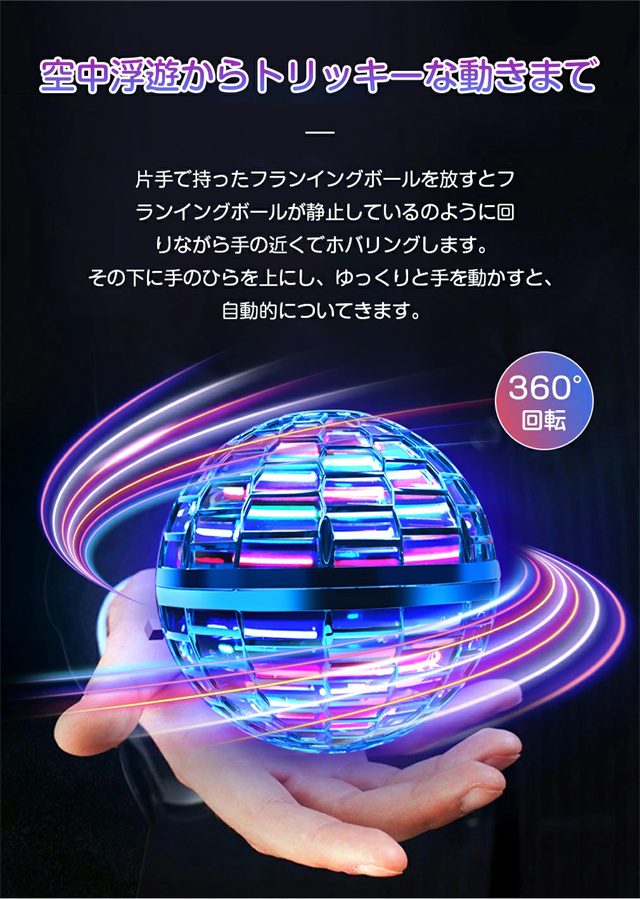 フライングボール おもちゃ ジャイロ ミニドローン ドローン スピナーボール フライング ライト ボール ブーメラン スピナー 光る 飛行 LEDライト USB充電 子ども 室内 屋外 遊び 浮遊 フライノバ プロ ラヴィット こどもの日 空飛ぶボール 本物 UFO 電子玩具 ブーメランスピナー 光るボール ロータリー 回転式 ストレス解消 室内遊び 屋外遊び アウトドア パーティー 飛ぶ TikTok 球状飛行ジャイロ 360°回転 子供向け ヘリコプター 飛行ボールトイ 小学生 男の子 女の子 知育玩具 空中浮遊 宙に浮く 空中移動 クリスマス お歳暮 プレゼント ギフト 誕生日 出産祝 入学祝 母の日 父の日 ハロウィン 新生活 夏休み 冬休み 春休み
