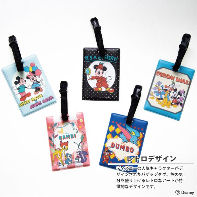 バゲッジタグ ネームタグ ディズニー レトロ ミッキー ミニー ドナルド デイジー グーフィー プルート バンビ ダンボ 日本製 コンサイス メール便可