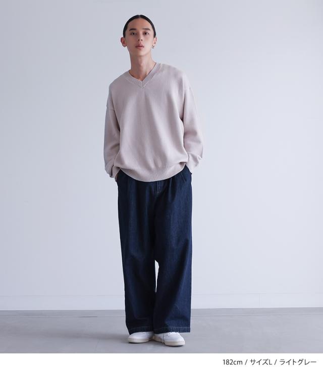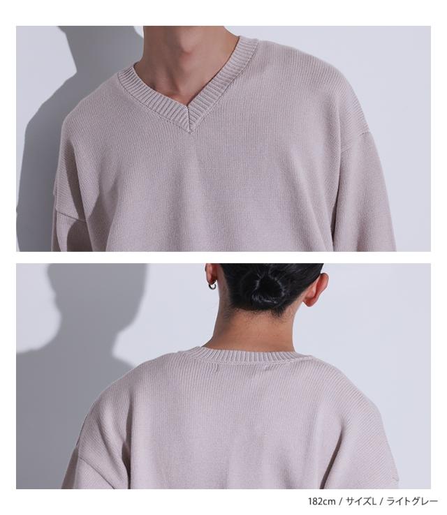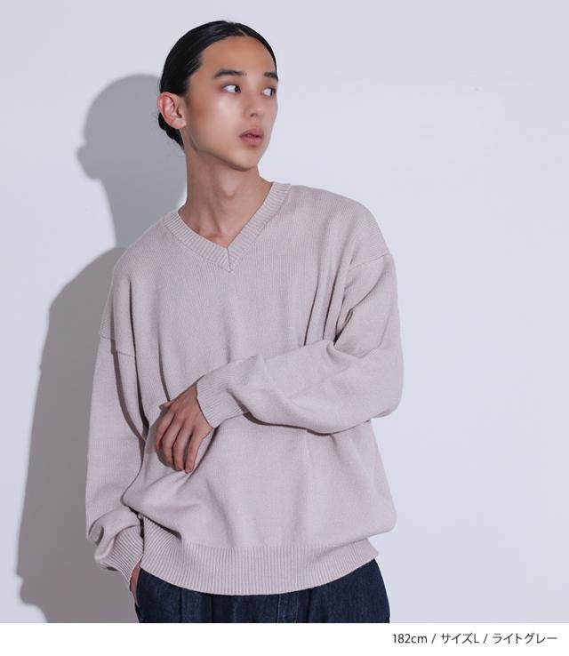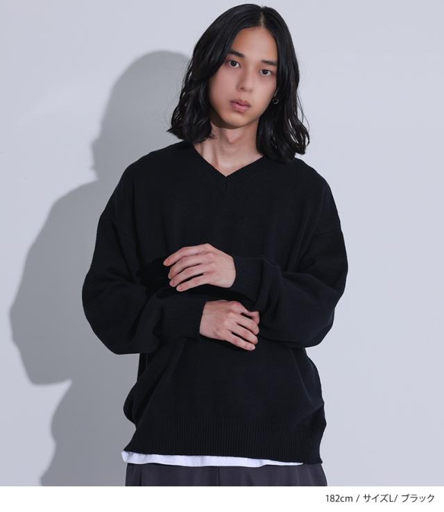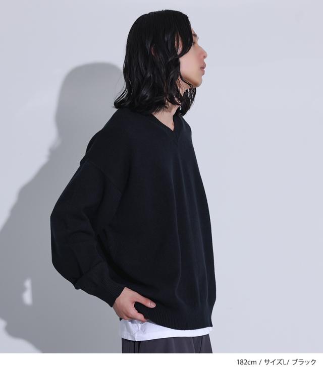 『MDRVネックソフトタッチニット』【メール便不可】【20】[ニット 長袖 メンズ トップス セーター Vネック ソフトタッチ やわらか 柔らかい もちもち レイヤード 重ね着 オーバーサイズ 秋 冬]
