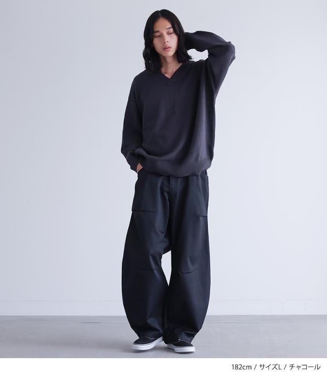 ■デザイン 柔らかくもちもちとしたソフトタッチな編地のニット。Vネック仕様なのでリラックス感のある着こなしができ、快適さとスタイリッシュさを両立させたアイテムです。 ■コーディネート オーバーサイズシルエットで肩のラインをドロップさせ、ゆったりとした抜け感を演出しており、Tシャツやシャツとのレイヤードも楽しめる深すぎない絶妙なVネックデザインもポイントです。 ■素材 レーヨンが主成分のため、とろみがあり滑らかな肌触りが最大の特徴で、一度着たら手放せなくなるほどの心地よさのニットです。 ■製品についての注意書き ニット製品につきまして。 ニット素材の持つ特性として編み上げる行程やプレス仕上げによって多少サイズや風合いの個体差が生じる場合がございます。 着用した時と実寸の長さが変わる可能性がございます。 また、着用の際ピリングが避けられず、完全に防止することはできません。毛玉取り器等で丁寧に取り除いてください。 ご了承の上、ご購入いただきますようお願いいたします。 |