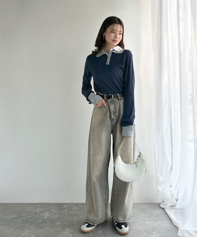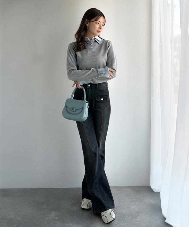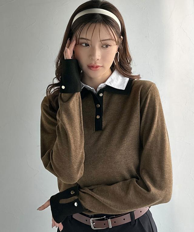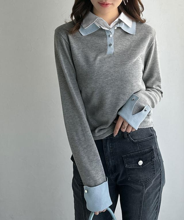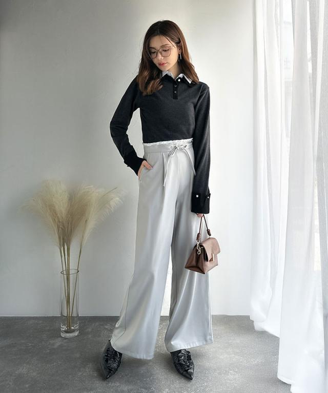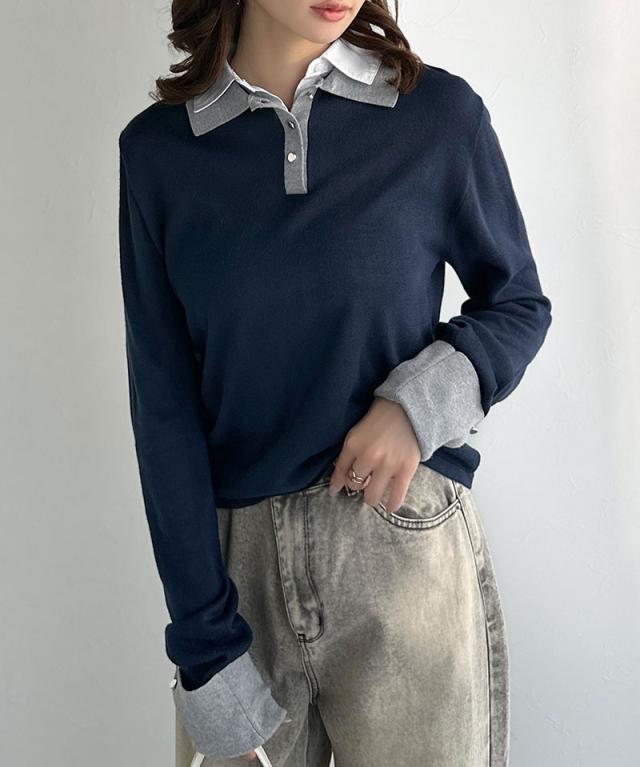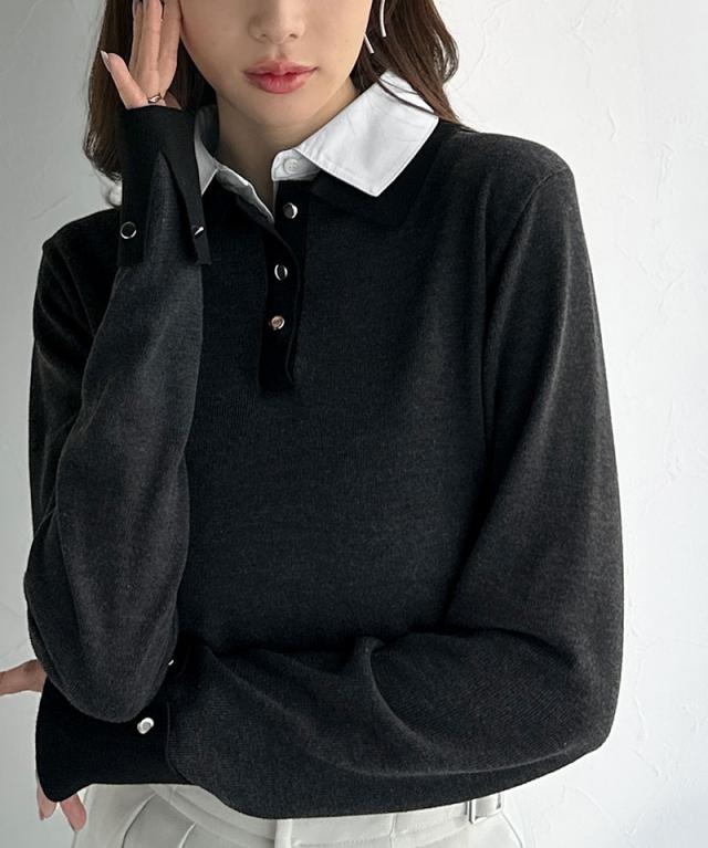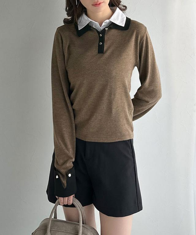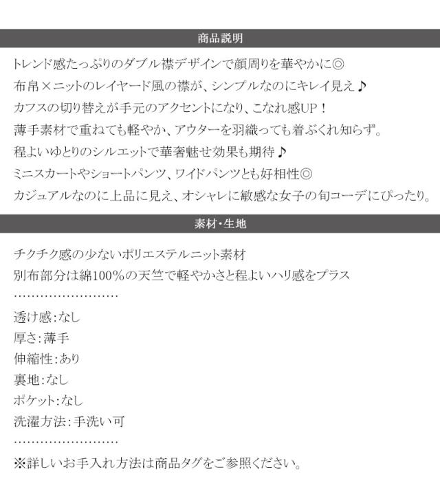 布帛×ニットのレイヤード風の襟が、シンプルなのにキレイ見え♪