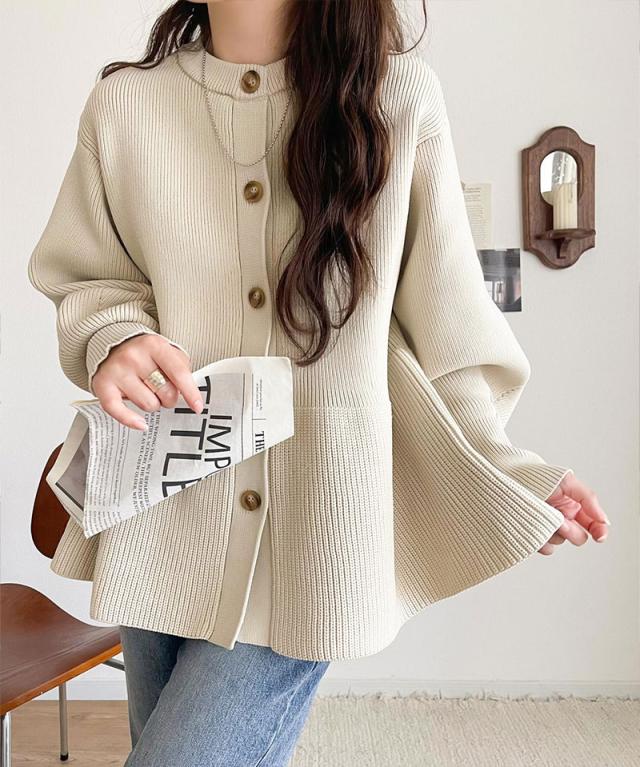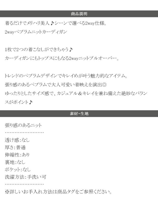 クラシカルエルフ冬新作 カーディガン レディース トップス 2way 仕様 ペプラム ニットカーデ 大きめ ボタン レイヤードコーデ ゆるっと オーバーサイズ 羽織り 大きいサイズ 2025aw ce1050319
