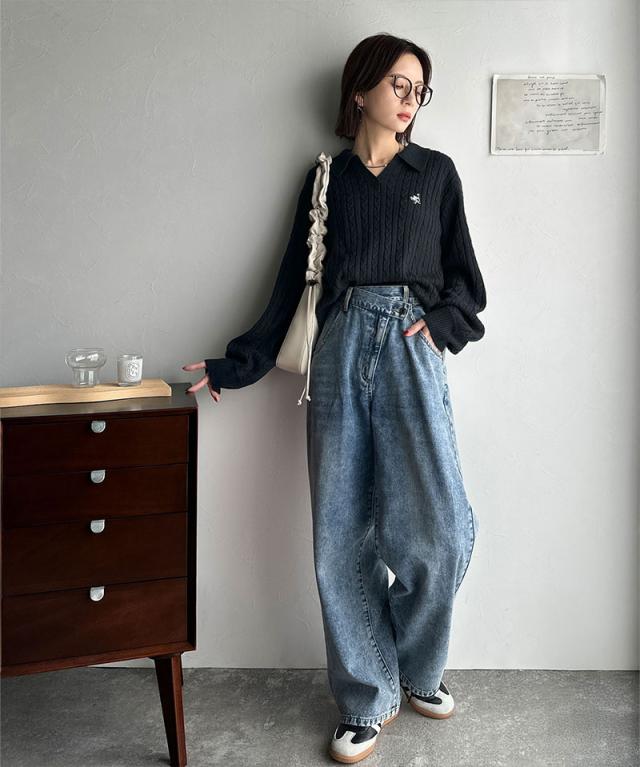 ケーブル編みの立体感が、着こなしに奥行きを与えてくれます。
