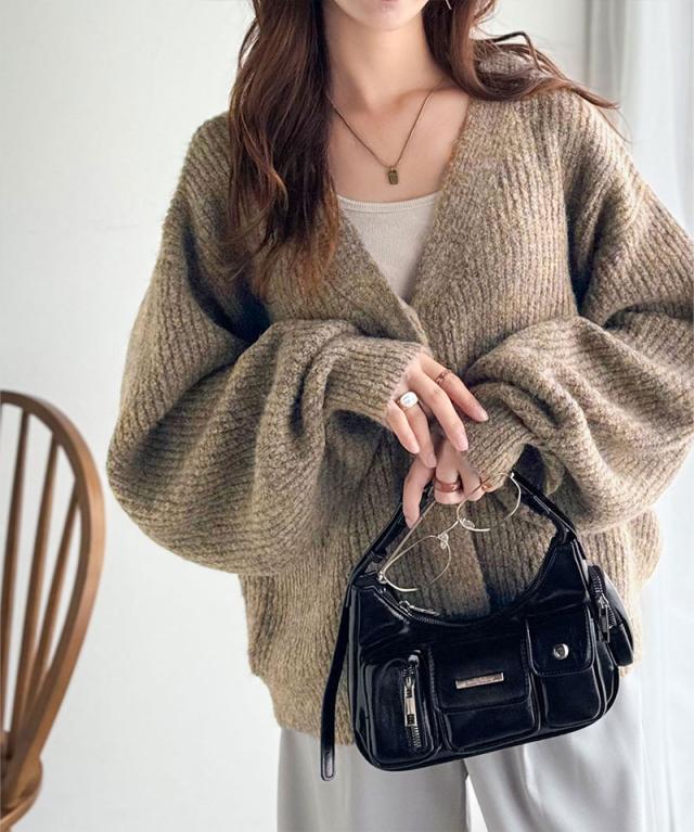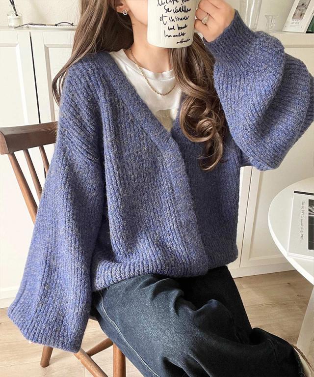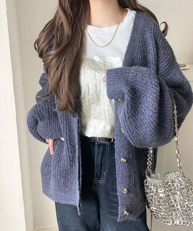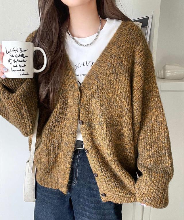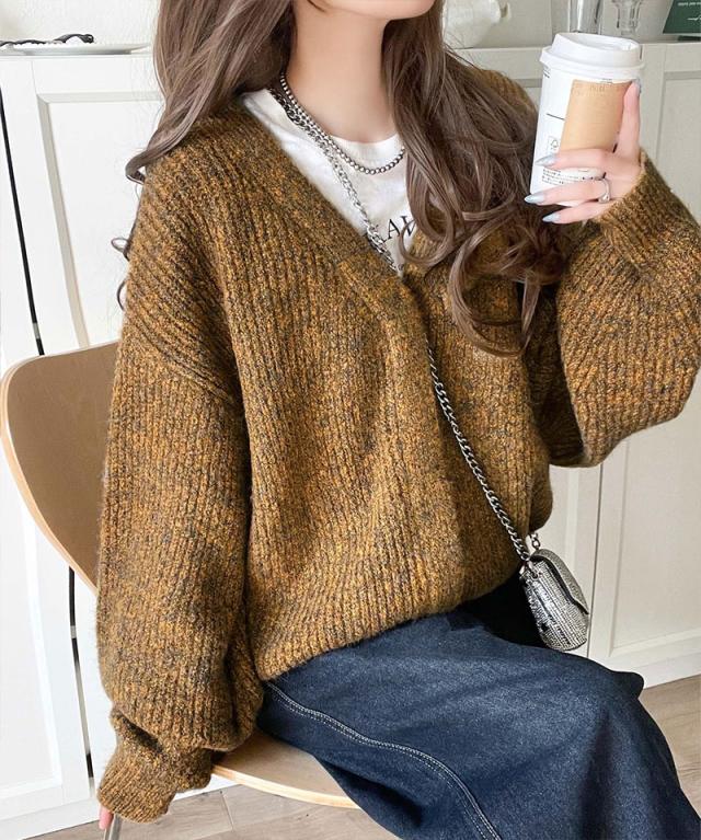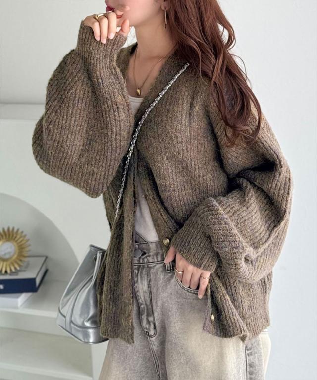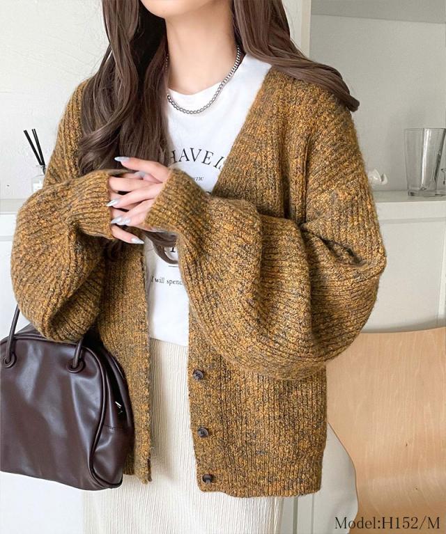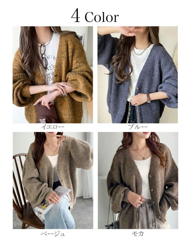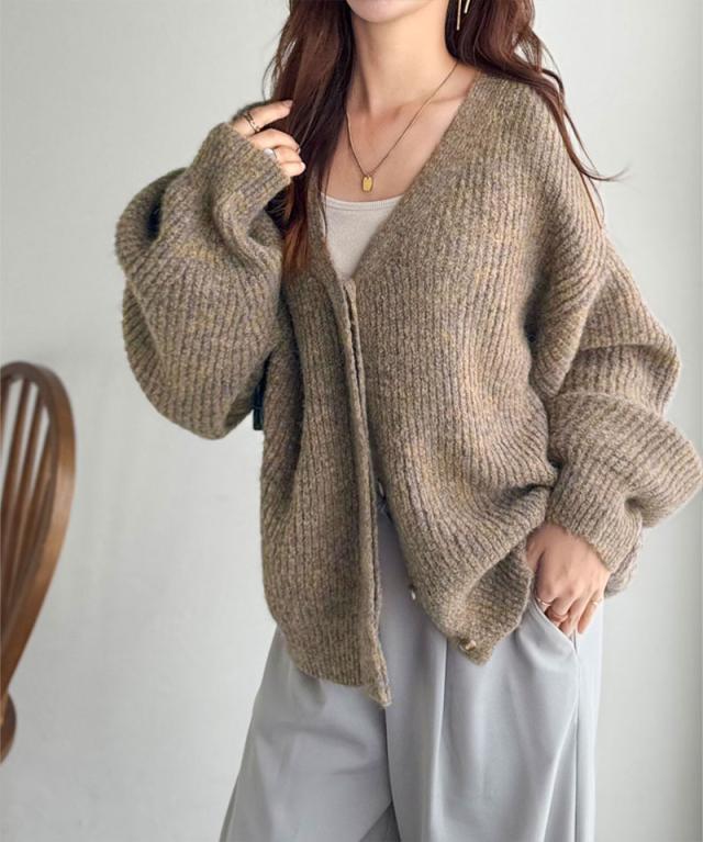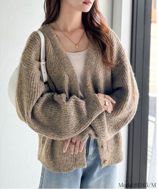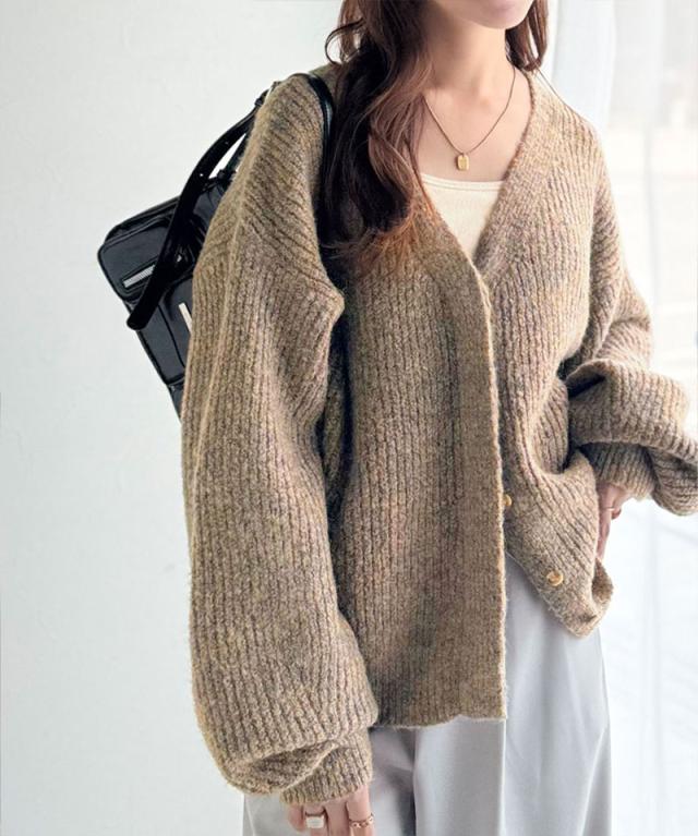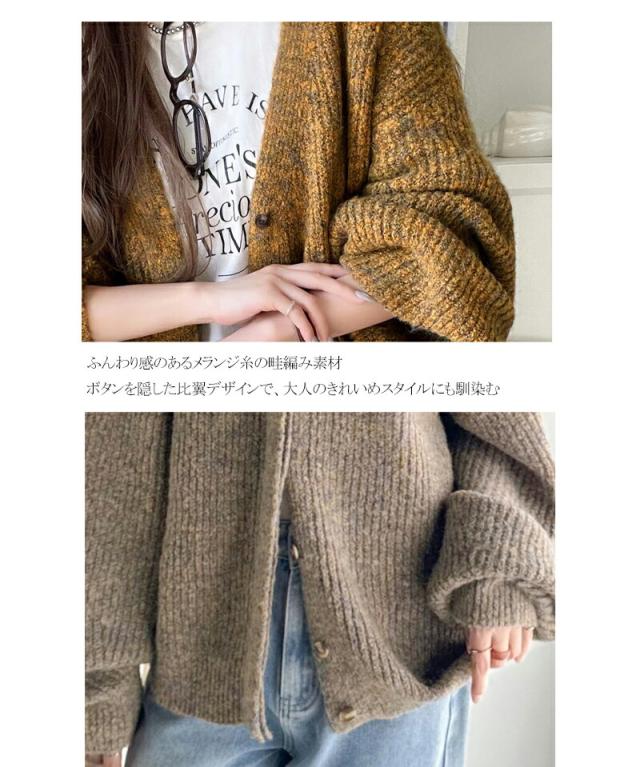 クラシカルエルフ冬新作 カーディガン レディース 秋冬 トップス 比翼 V ネック メランジ 糸 ふんわり ミックス ニットカーデ 長袖 ゆるっと オーバーサイズ 羽織り 大きいサイズ 2025aw ce1050314