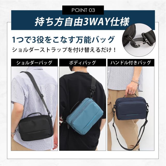 「ショルダーバッグ」「ボディバッグ」「ハンドル付きバッグ」として使用可能