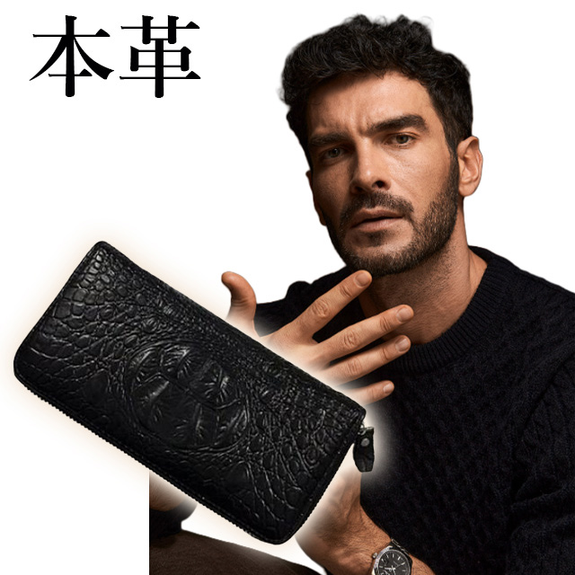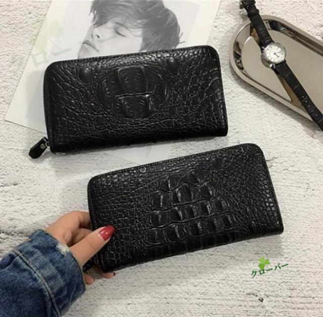 長財布 メンズ 財布 クロコ型押し 鰐 ワニ クロコダイル 本革 レザー ロングウォレット 収納 携帯 大容量 おしゃれ かっこいい