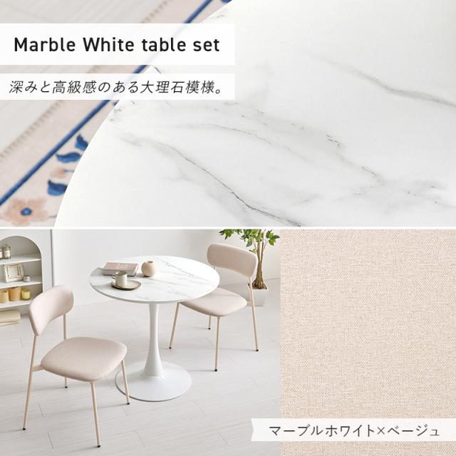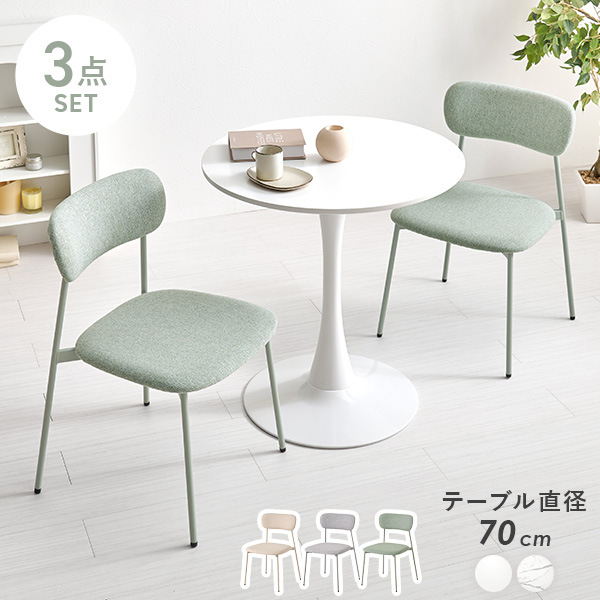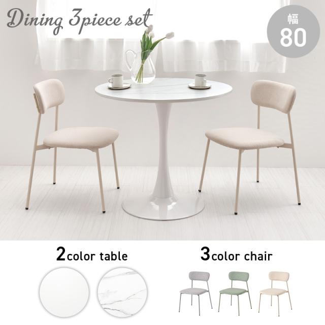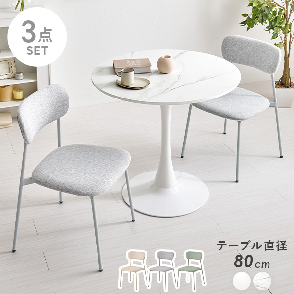 ダイニングテーブルセット 丸 2人 2人用 ダイニングセット 3点 丸テーブル ダイニング カフェテーブル 80cm カフェテーブルセット 安い 3点セット おしゃれ 白 韓国 北欧 チェア かわいい 大理石 セット ファブリック 布
