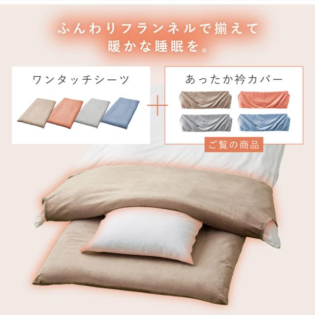 掛け布団の衿部分に被せるだけのカバー。フランネルタッチで肌触りふんわり。ふんわりとした肌触りのフランネル素材使用。肌あたり優しく頬擦りしたくなる触り心地です。