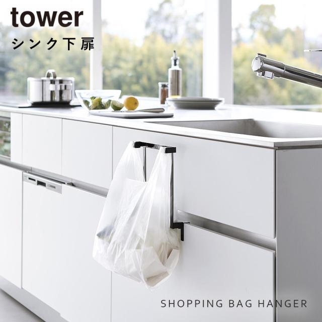 キッチンシンク下収納扉レジ袋ハンガー タワー 山崎実業 tower シンク 扉 ゴミ箱 シンク扉ゴミ入れ おしゃれ モノトーン ホワイト ブラック 10332 10333