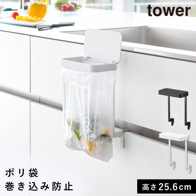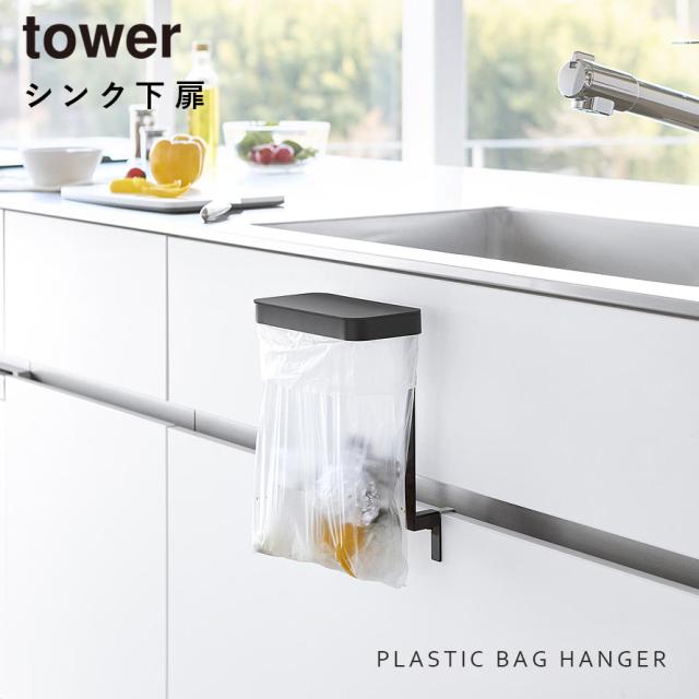キッチンシンク下収納扉ポリ袋ホルダー タワー 山崎実業 tower シンク 扉 ゴミ箱 シンク扉ゴミ入れ おしゃれ モノトーン ホワイト ブラック 10334 10335