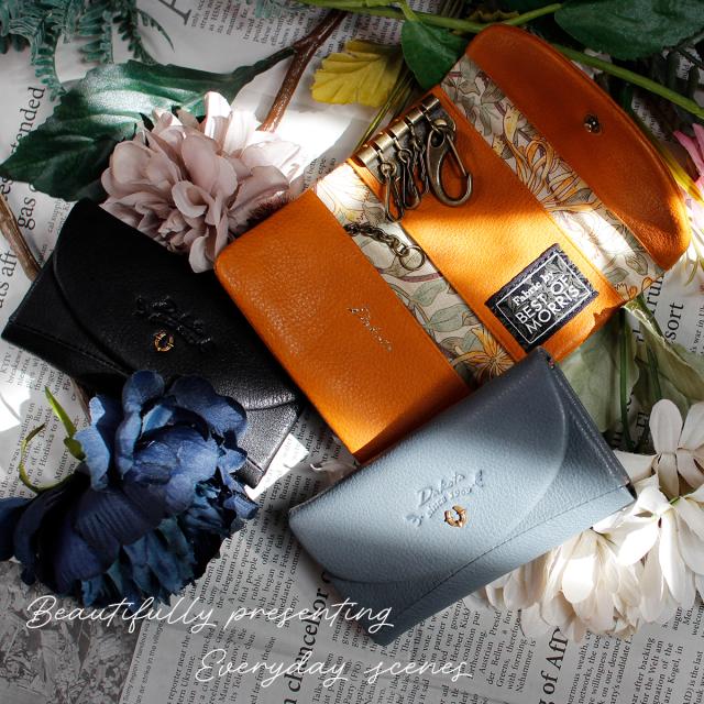 | 「BEST OF MORRIS」の生地を使用した、優しい上品なお財布シリーズ。 軽量で柔らかな牛革を袋縫いで上品に仕上げました。 内装には、時代を超えて愛される「BEST OF MORRIS」の芸術的なテキスタイルを使用。 繊細な馬蹄モチーフのブローチと革の美しい表情が、日常のシーンを美しく演出します。 袋縫いでふっくら優しい印象が魅力のキーケースです。内側には、キーフックが4つ、キーチェーンが1つ付いています。優しい牛革のカラーリングと、「BEST OF MORRIS」の柄生地の組み合わせを楽しむことができます。ギフトにもおすすめのアイテムです。 |