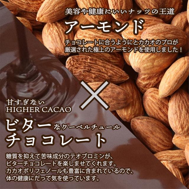 ハイカカオチョコレート(国内製造)(カカオマス、砂糖、ココアバター、全粉乳)、アーモンド/乳化剤、香料、(一部に大豆・乳成分・アーモンドを含む)