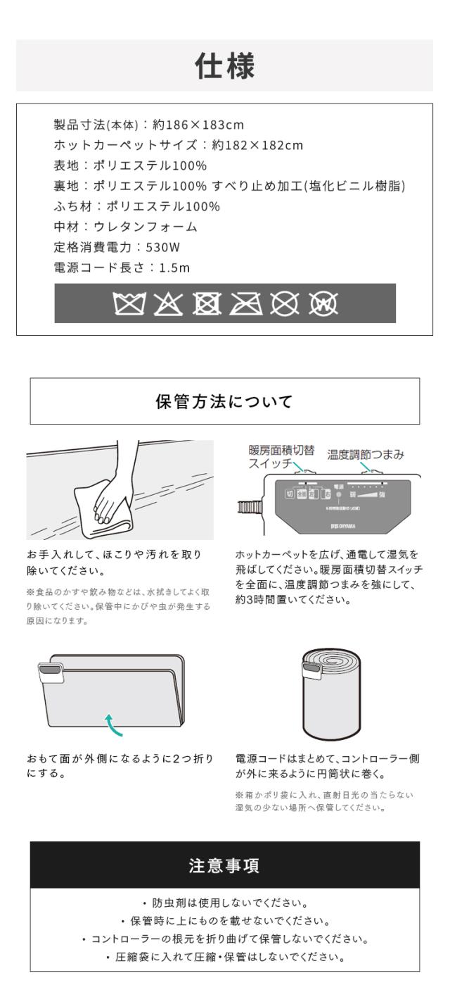 ホットカーペット 2畳 本体 ラグ 一体型 正方形 電気カーペット 2畳用 ホットマット 即暖 省エネ 暖房 面積切替 温度調節 床暖房 暖房器具 カーペット 厚手 ラグマット 絨毯 アイリスオーヤマ ラクッション 182×182 PHC-CR20A * 送料無料