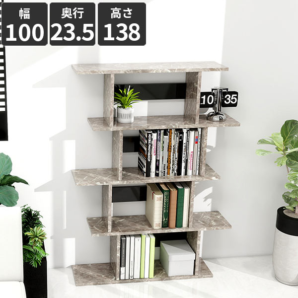 ディスプレイラック オープンシェルフ A4 おしゃれ マガジンラック 本棚 鏡面 大理石風 高級感 4段 北欧 木製 間仕切り ディスプレイシェルフ グレー オープンシェルフ 大理石調 飾り棚 オープンラック 大容量 パーティション モダン 書斎収納 日本製 組立品 幅100cm ★