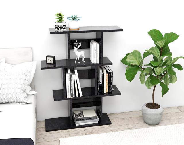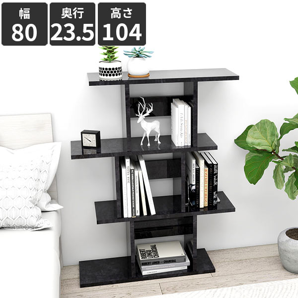ディスプレイラック オープンラック おしゃれ マガジンラック パーテーションラック オープンシェルフ 大理石風 3段 鏡面 飾り棚 書斎 木製 本棚 A4 オフィス 高級感 間仕切り ディスプレイ棚 A4サイズ 仕切り インテリア 書類収納 日本製 組立品 ブラック 幅80cm ★