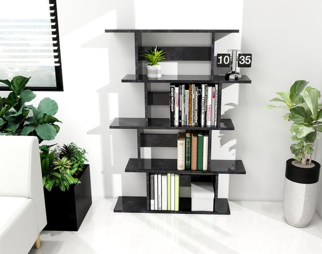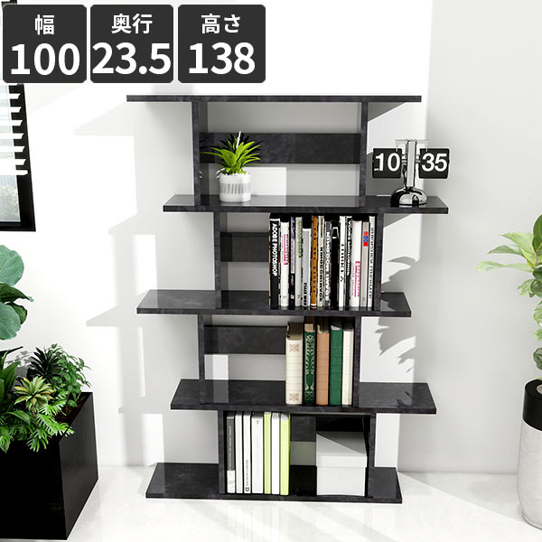 ディスプレイ棚 オープンラック ディスプレイラック 大理石風 本棚 4段 ブラック 飾り棚 鏡面 コレクションラック マガジンラック A4 おしゃれ モダン 書斎 オープンシェルフ パーテーション 木製 間仕切り ディスプレイシェルフ オフィス 組み立て品 日本製 幅100cm ★