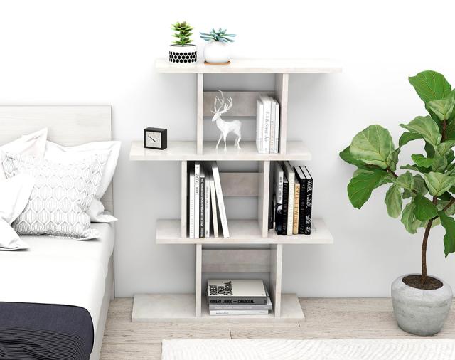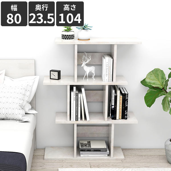 オープンシェルフ ホワイト 大理石柄 マガジンラック 木製 本棚 3段 おしゃれ オープンラック 飾り棚 間仕切り 北欧 鏡面 ディスプレイシェルフ パーティション A4 ディスプレイ棚 高級感 A4サイズ リビング収納 仕切り 待合室 書斎 オフィス 書類 日本製 組立品 幅80cm ★