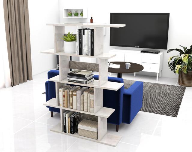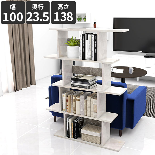 ディスプレイラック 大理石風 高級感 4段 マガジンラック 本棚 鏡面 北欧 ディスプレイシェルフ オープンシェルフ オープンシェルフ パーテーション 大理石調 飾り棚 オープンラック 大容量 A4 ホワイト おしゃれ 大理石調 書斎収納 木製 間仕切り 日本製 組立品 幅100cm ★