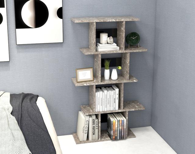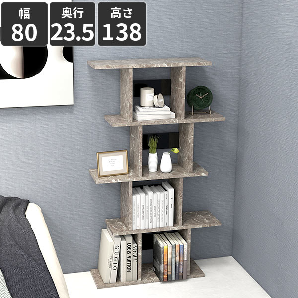 オープンシェルフ ディスプレイシェルフ 本棚 A4 4段 大理石風 ディスプレイラック 鏡面 オープンラック コレクションラック 間仕切り おしゃれ グレー 飾り棚 メラミン 高級感 パーテーション リビング収納 店舗什器 大理石柄 オフィス モダン 組立品 日本製 幅80cm ★