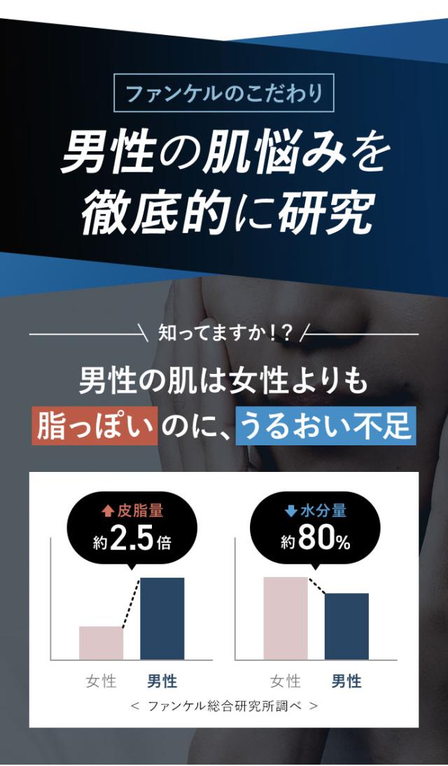 男性の肌だって実はデリケート。ダメージを受けている素肌に、ヒリつく原因のアルコール無配合の無添加スキンケアを。