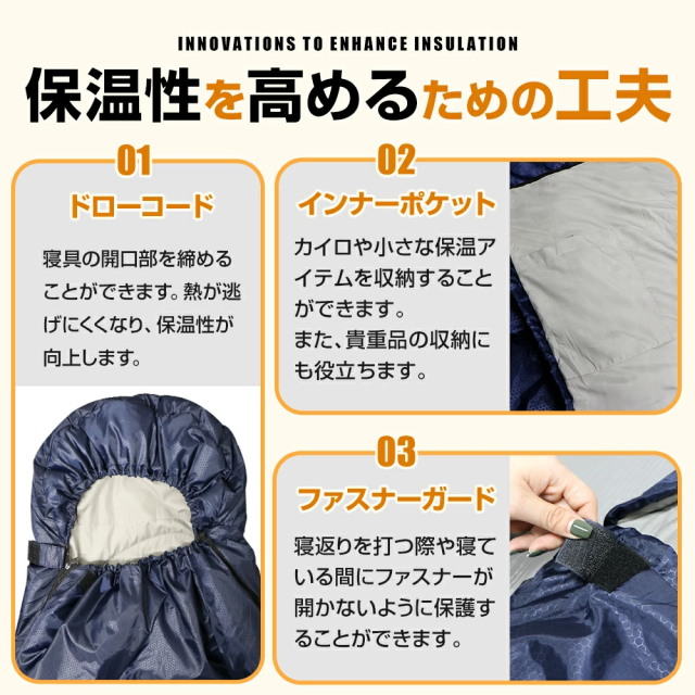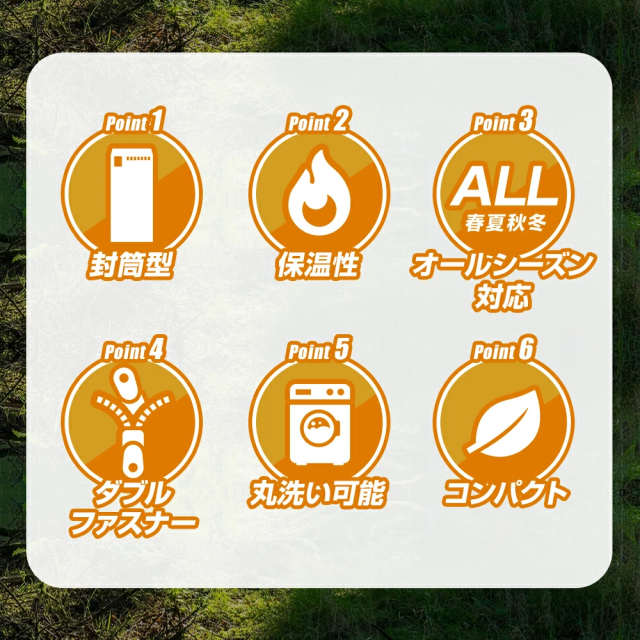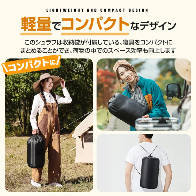 キャンプや車中泊、防災用としてもおすすめの寝袋です。