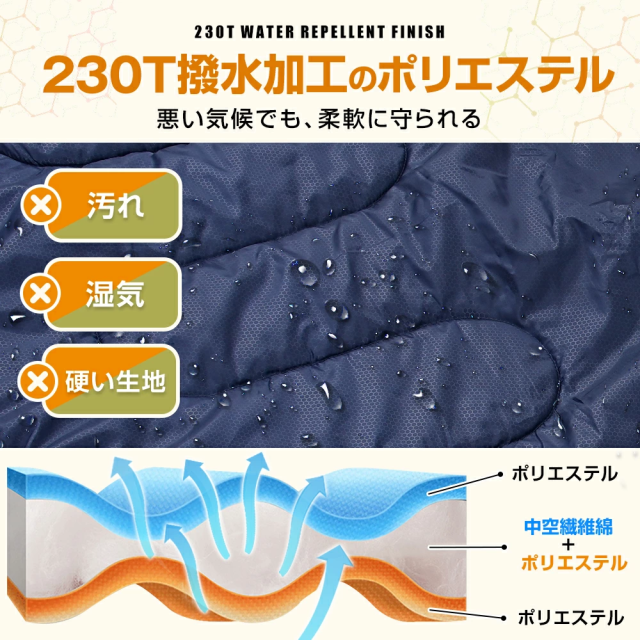 ・側生地:ポリエステル100%(230T高密度生地)+撥水加工