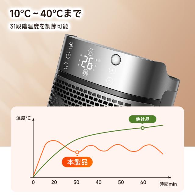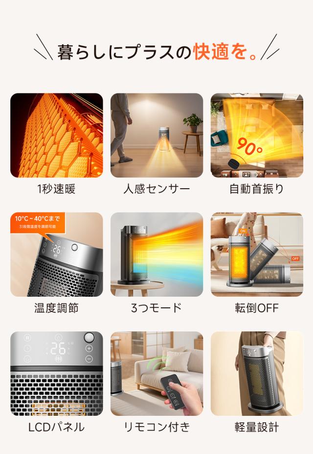 高品質PTCヒーター採用。わずか2秒で即暖、寒さ知らず。