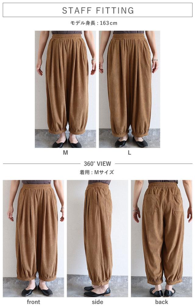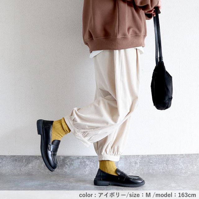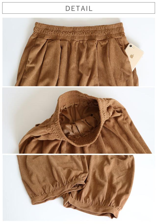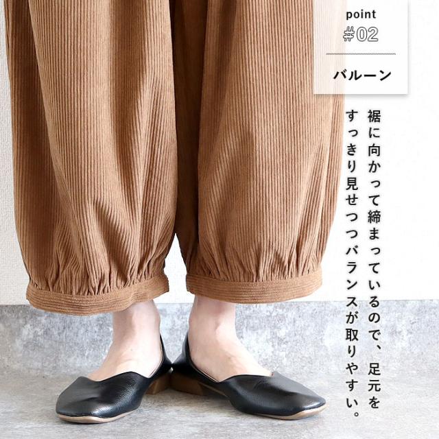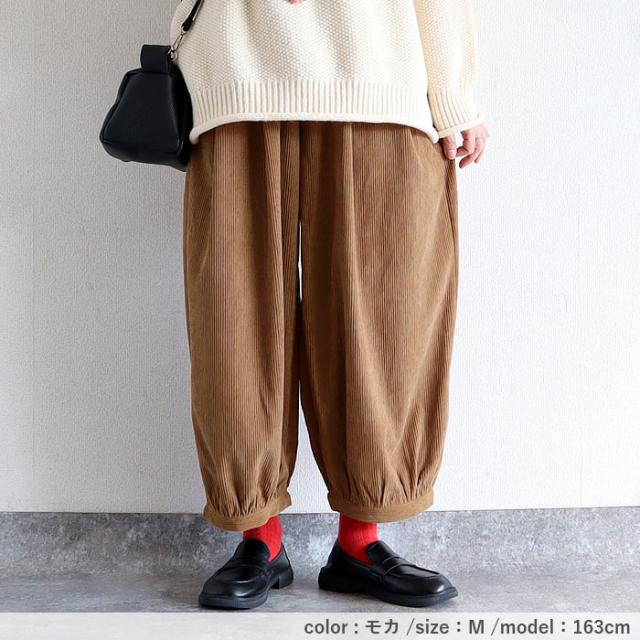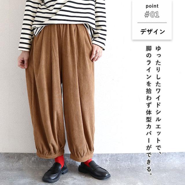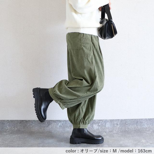 ボトムス レディース バルーンパンツ 秋 冬 白 黒 おしゃれ コーデュロイ サルエルパンツ ナチュラル ウエストゴム ポケット付 楽ちん シンプル 40代 30代 50代 60代 大きいサイズ ゆったり 大人 カジュアル かわいい SALE セール uricca ウリッカ うりっか