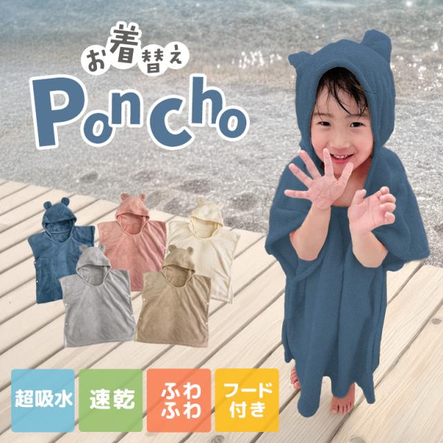 お着替えポンチョ キッズ ポンチョ バスローブ フード付き バスポンチョ バスタオル マイクロファイバー 吸水 速乾 軽量 防寒 ふわふわ くま耳 かわいい 子供用 タオル プール ビーチ 温泉 お風呂上がり 湯上がりポンチョ 男の子 女の子