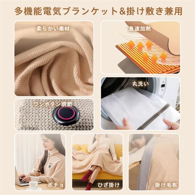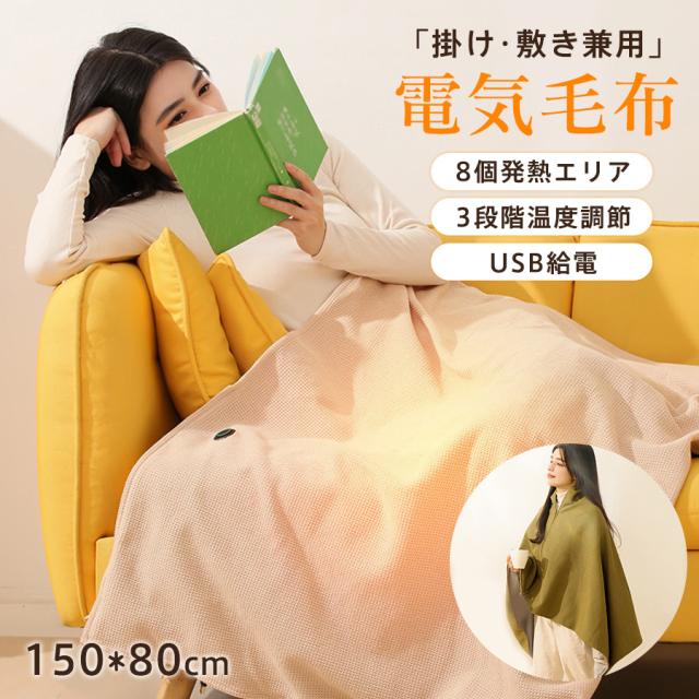 着る毛布 電気 掛け敷き兼用 掛け毛布 敷毛布 大きいサイズ 150*80cm 大判 電気毛布 ブランケット 発熱 USB給電 電気ひざ掛け 防寒対策 暖房器具 速暖 洗える ふわふわ ブランケット 省エネ キャンプ 車中泊 アウトドア オフィス 着る電気毛布 ヒーター 加熱 軽量 おしゃれ かわいい