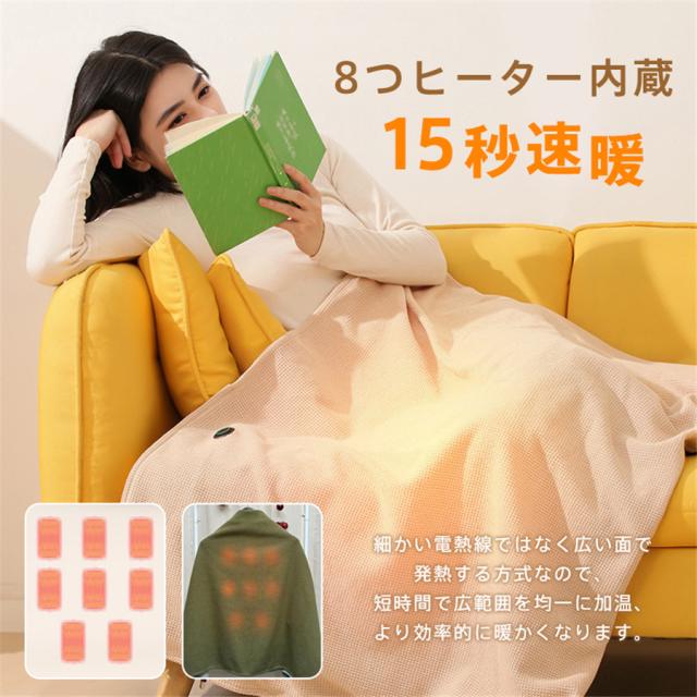 電気毛布 着る毛布 ひざ掛け 電気ブランケット 8枚ヒーター内蔵 USB充電 3段階温度調節 肩掛け 膝掛け 丸洗い可 防寒 省エ