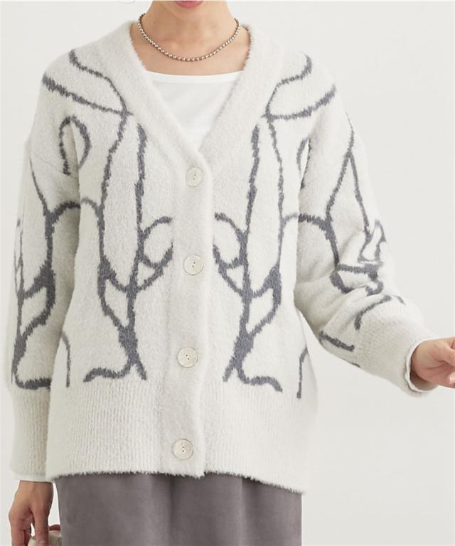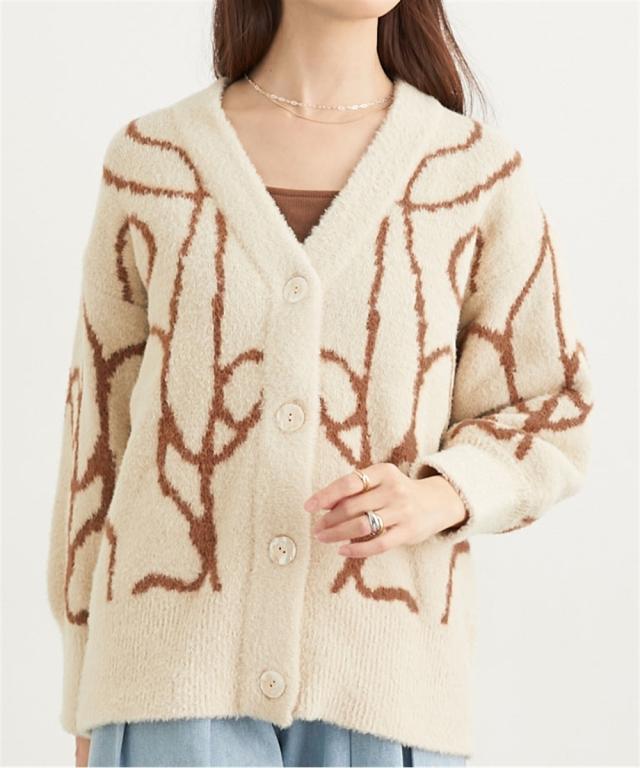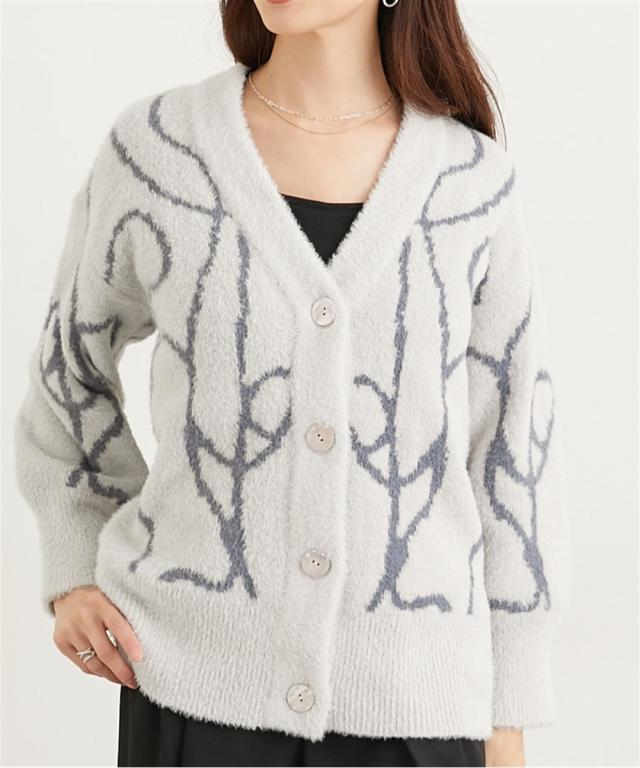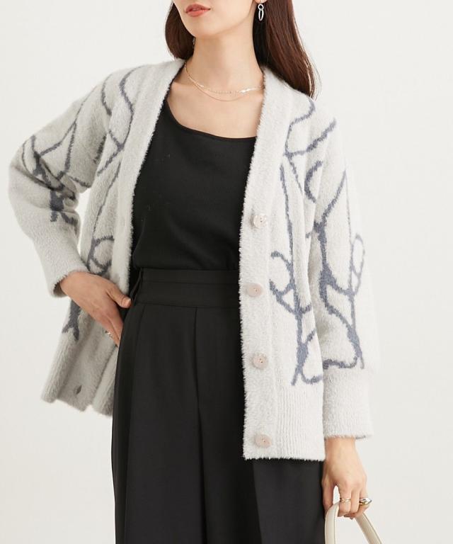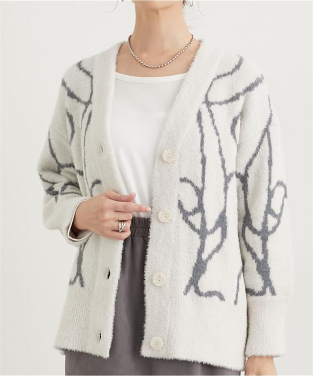 ニット セーター レディース シルキーフェザー線画 カーディガン 秋 冬 | L/LL | ニッセン nissen