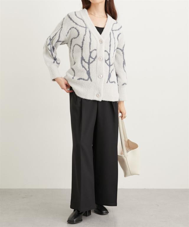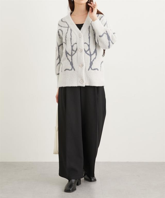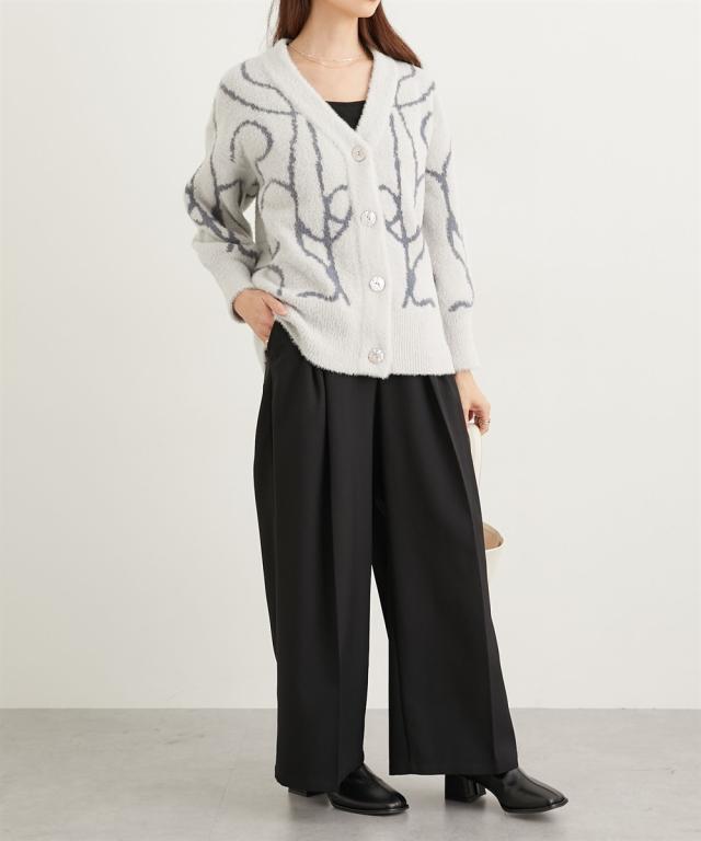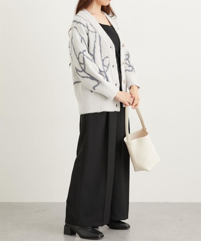 カジュアルからキレイめコーデにも着まわせてスタイリングのアクセントに。ボタンを閉めてBIGニットプルオーバーとして。ボトムに合わせてボタンを少し開けてバランスを整えで着るのもおすすめです 。ナロースカートやワイドパンツで大人っぽく。ボリュームが出過ぎないニットなので、大人っぽくシンプルなシルエットで着られます。