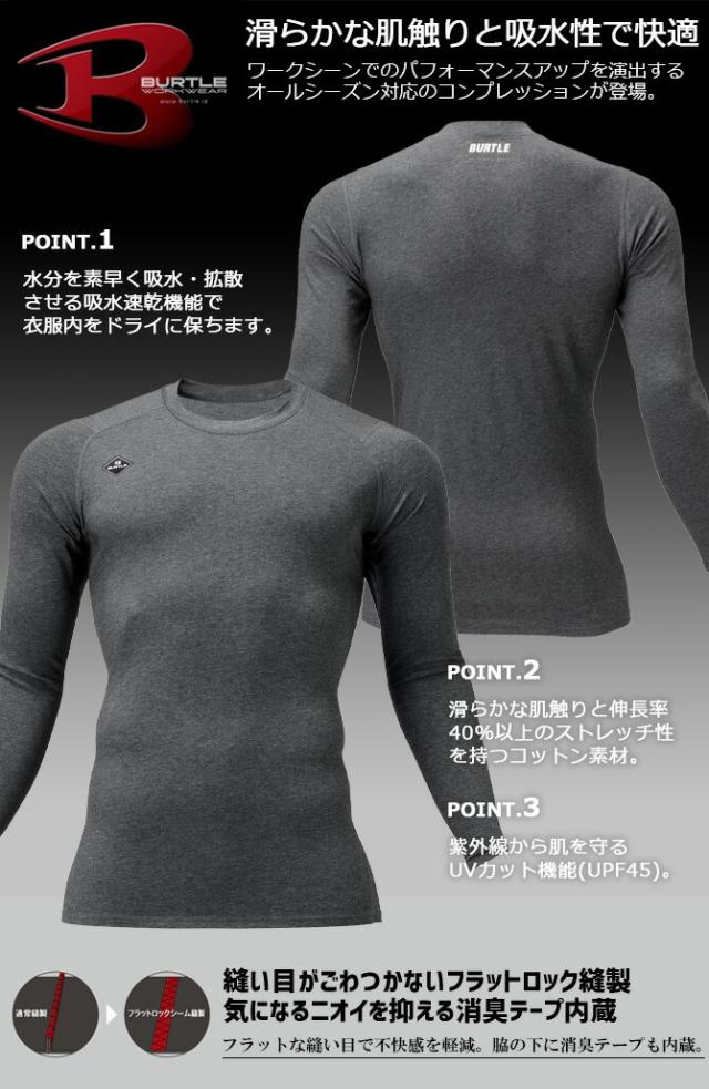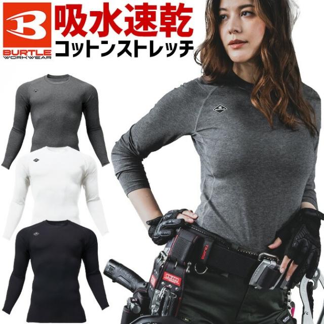【1点までネコポス可】バートル 2025年新作 コットンフィッテッド 長袖 4114 BURTLE メンズ レディース 秋冬 オールシーズン アンダーレイヤーコンプレッション 吸汗速乾 消臭 UVカット ストレッチ 作業服 作業着