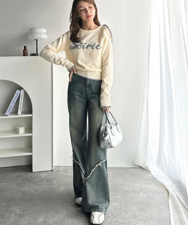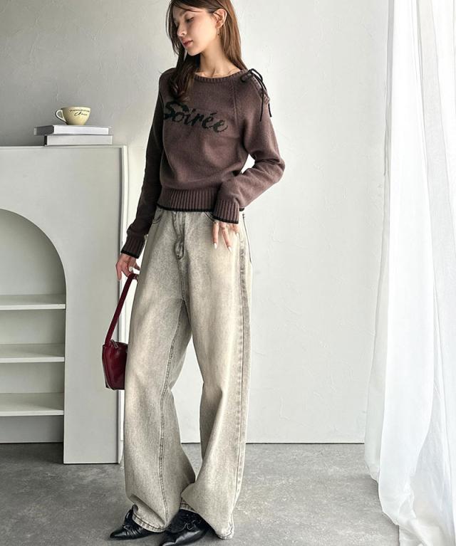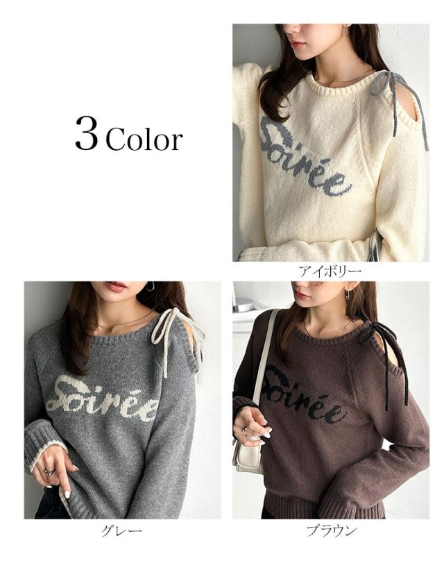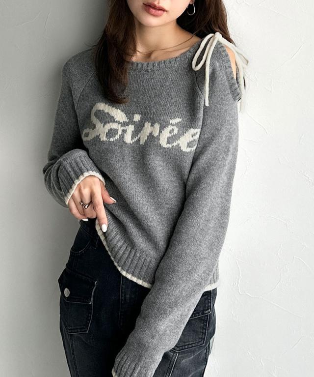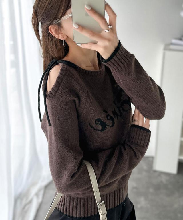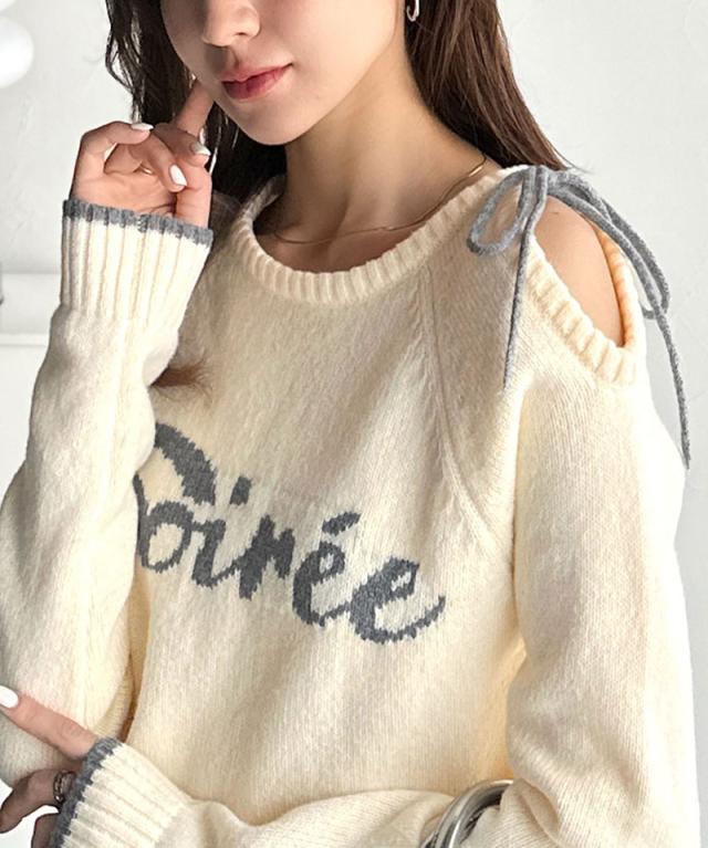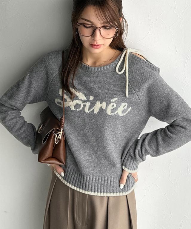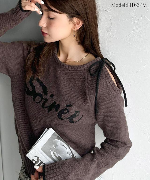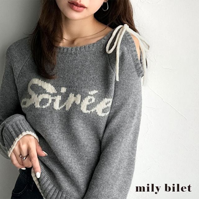 クラシカルエルフ冬新作 mily bilet ニット レディース 長袖 トップス レディース プルオーバー 長袖 ロゴ入り ワンオフショル アシンメトリー 大人ガーリー 華やか 着映え 柔らか トレンド 肌見せ チクチクしにくい 甘め 大きいサイズ 2025aw mi1329060