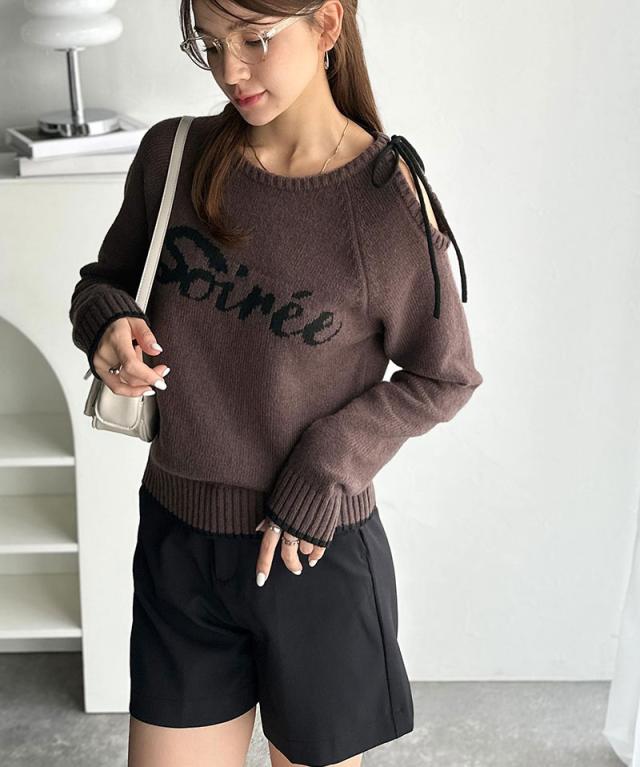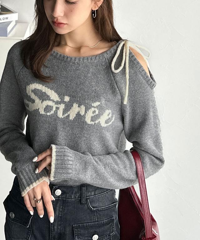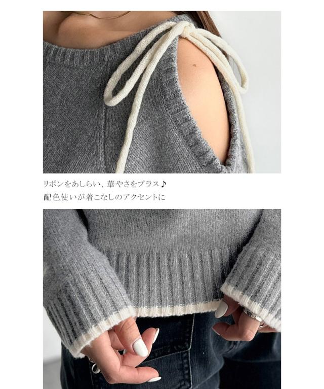 トレンド感のある肌見せデザインと、肩には動きのあるリボンをプラス。