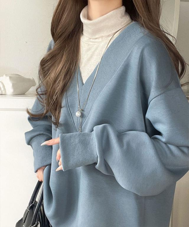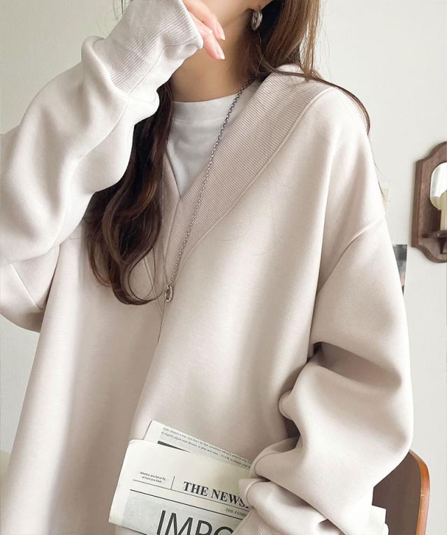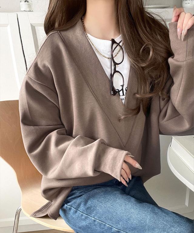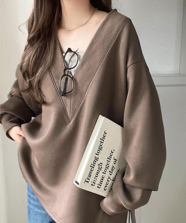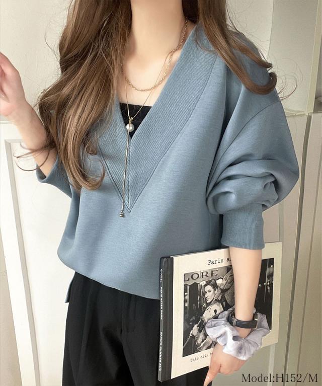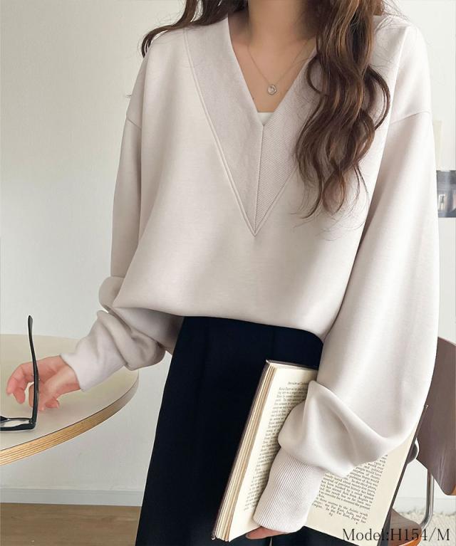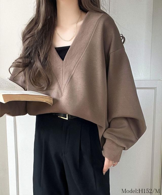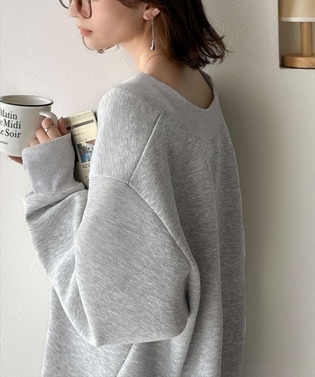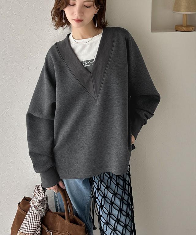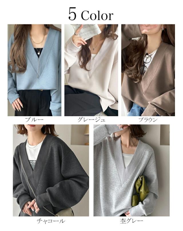 クラシカルエルフ冬新作 スウェット レディース トップス リブ 切替 V ネック ダンボール カットソー 長袖 ゆるっと オーバーサイズ 大きいサイズ 2025aw ce1110155