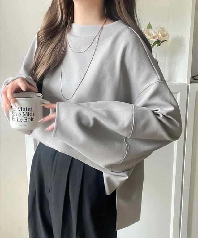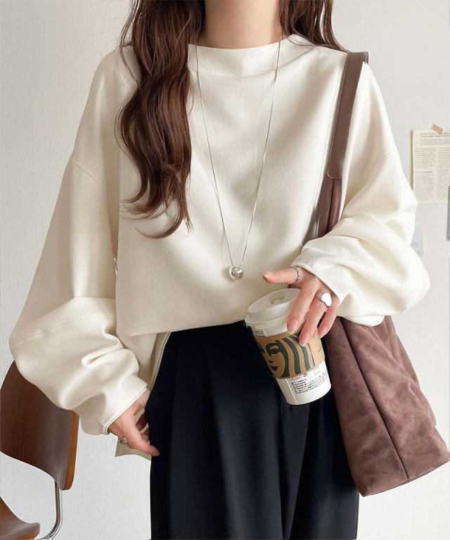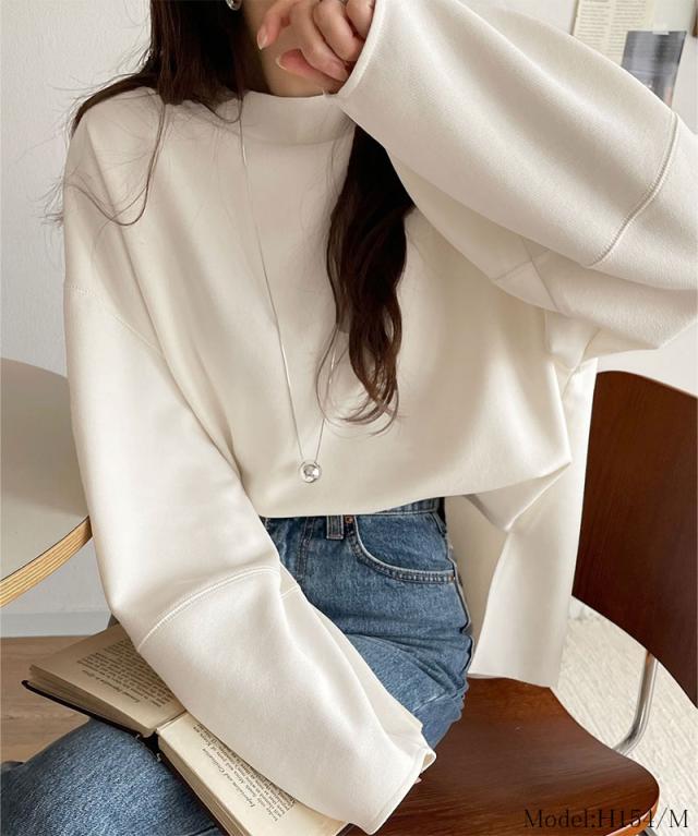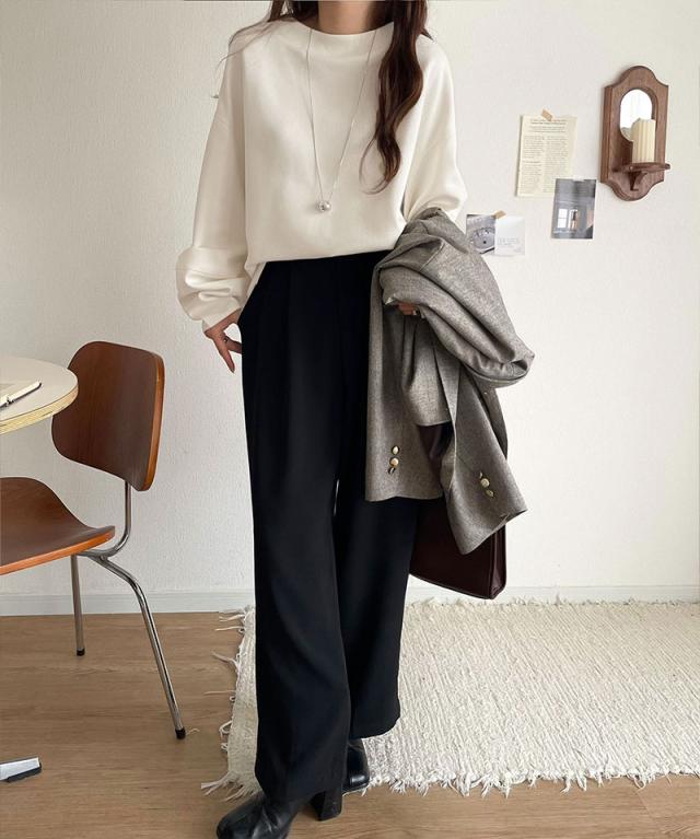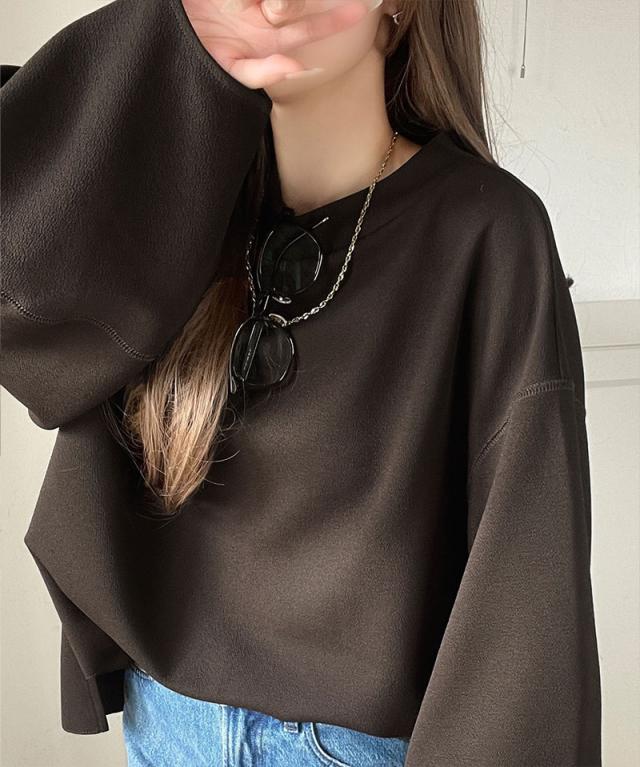 すっきりとした襟ぐりで抜け感と大人っぽさを演出します。