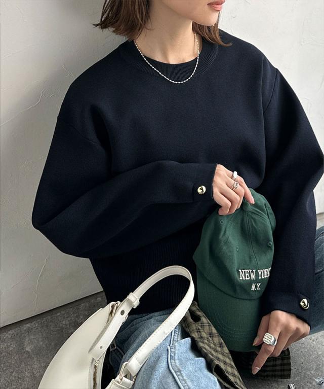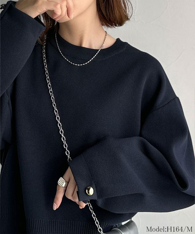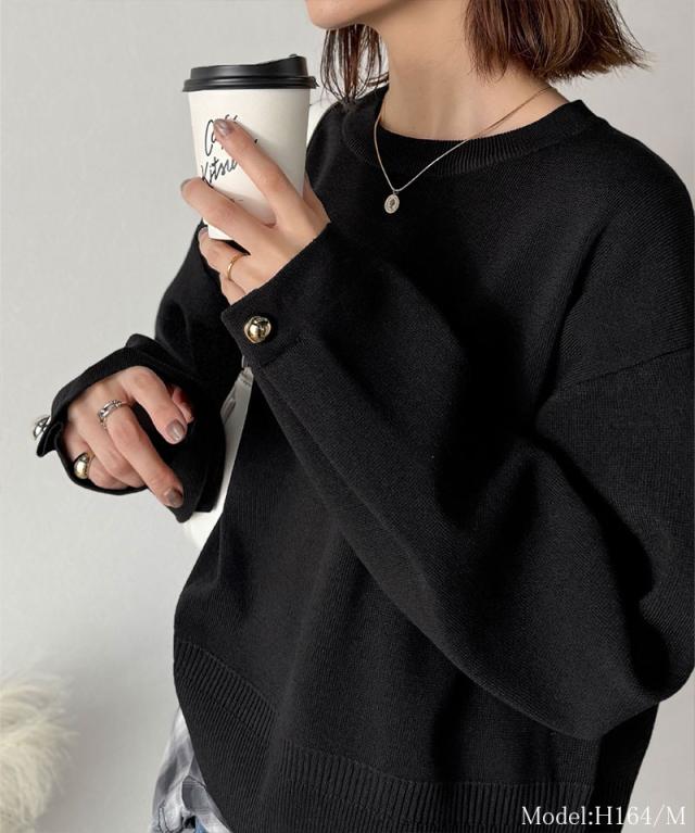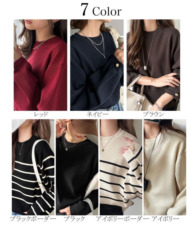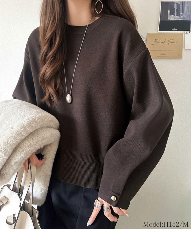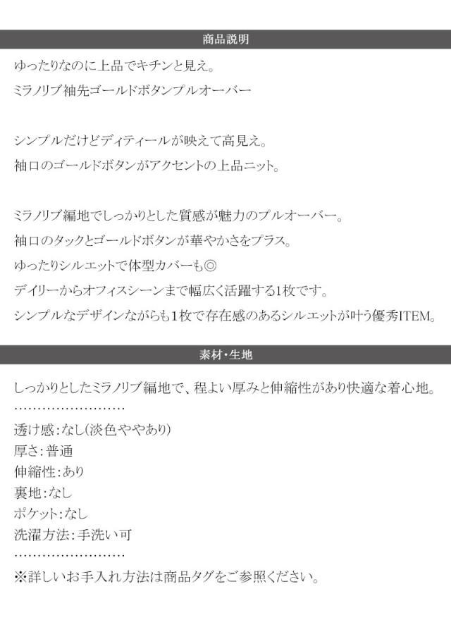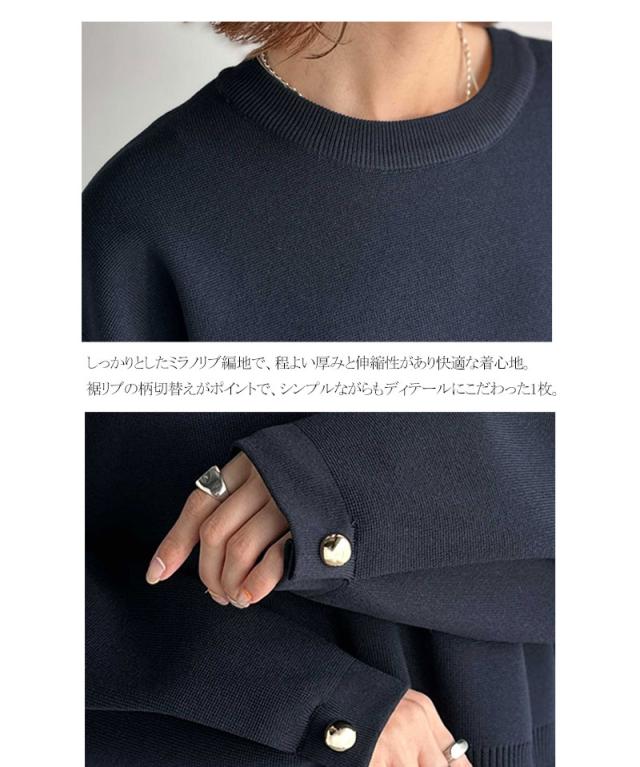 クラシカルエルフ冬新作 ニット レディース 長袖 トップス レディース ゆったりなのに上品 キチンと見え ミラノ リブ 袖先 ゴールド ボタン プルオーバー 大きいサイズ 2025aw ce1050331