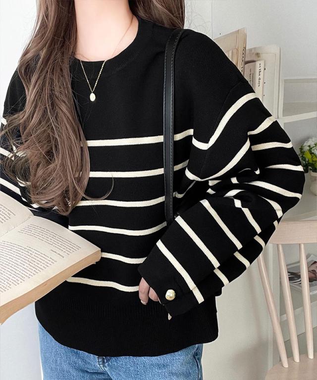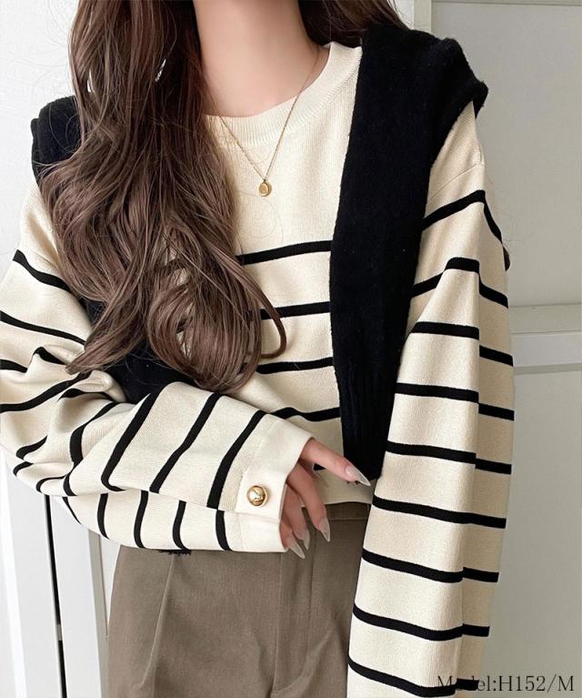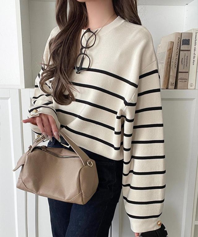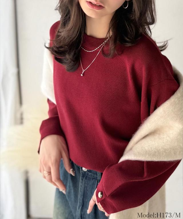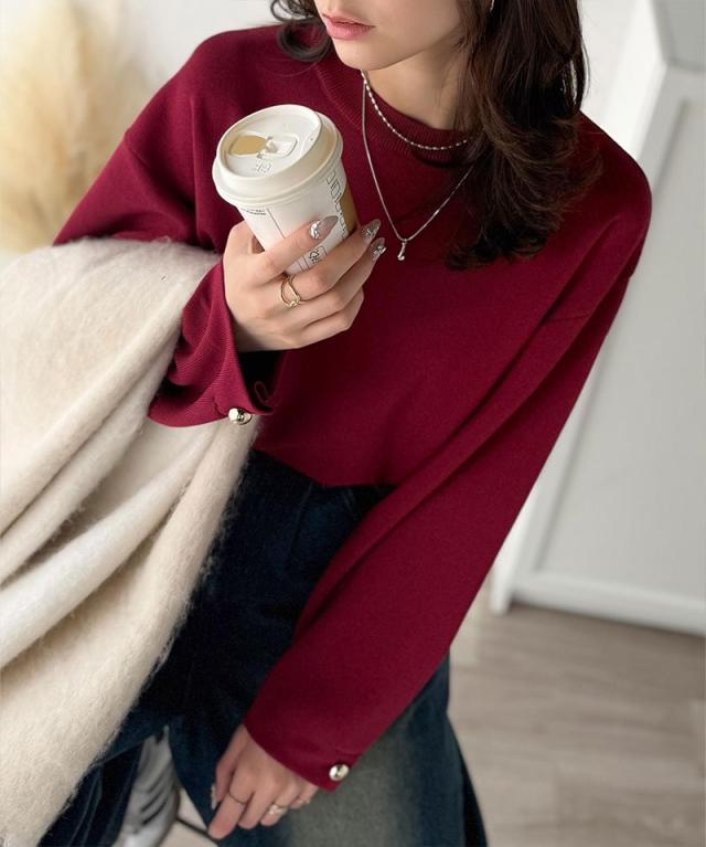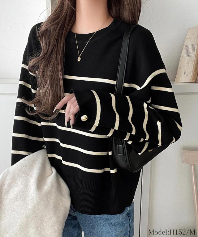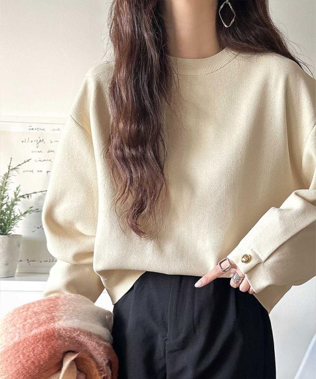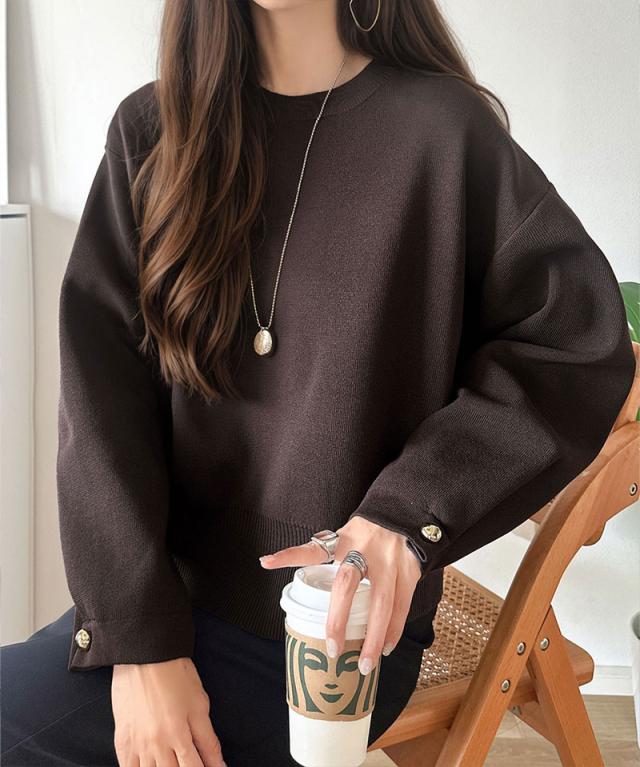 クラシカルエルフ冬新作 ニット レディース 長袖 トップス レディース ゆったりなのに上品 キチンと見え ミラノ リブ 袖先 ゴールド ボタン プルオーバー 大きいサイズ 2025aw ce1050331