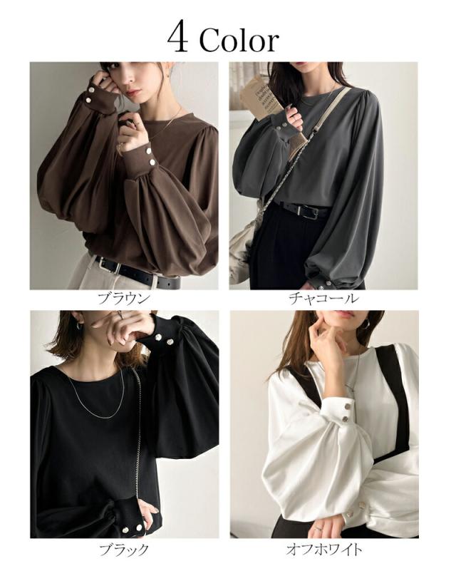 クラシカルエルフ冬新作 トップス レディース きれいめ 長袖 Tシャツ 綺麗め スタイル ボタン ボリューム スリーブ 長袖 ゆるっと オーバーサイズ 大きいサイズ 2025aw ce1050337