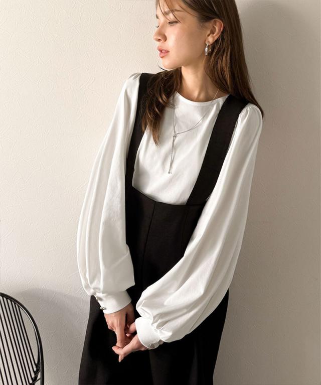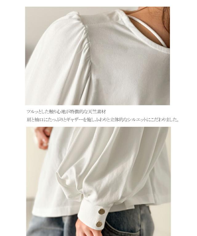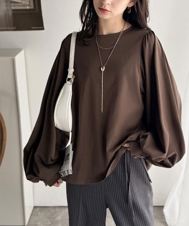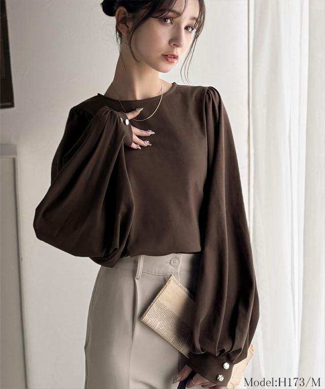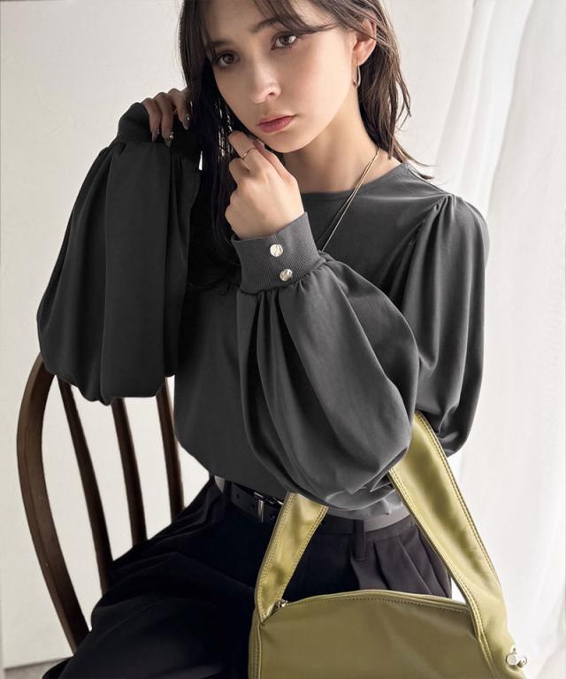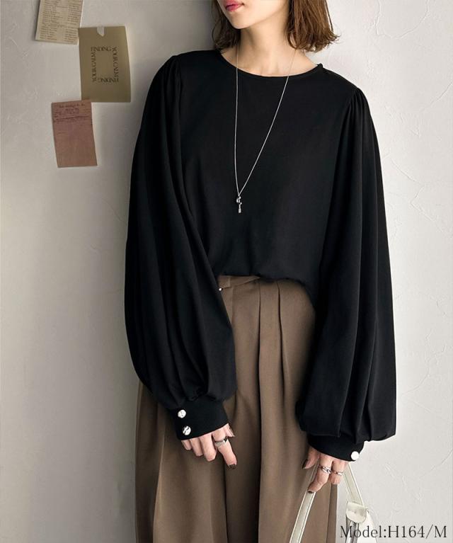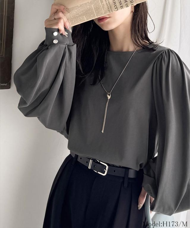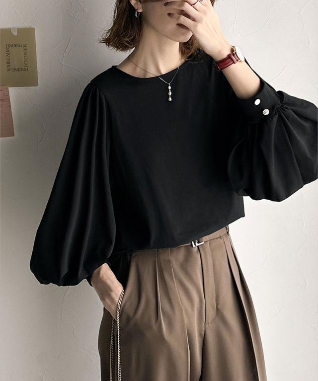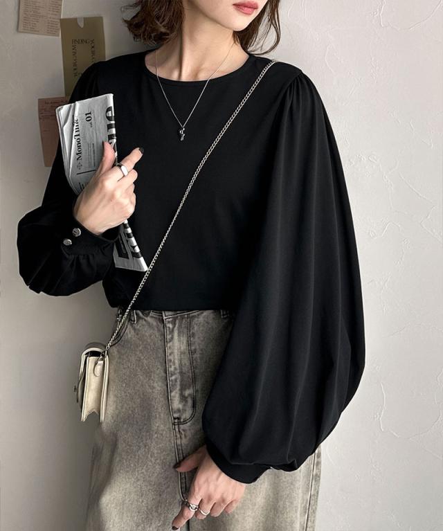 ボリュームたっぷりのスリーブが魅力的なカットブラウス。