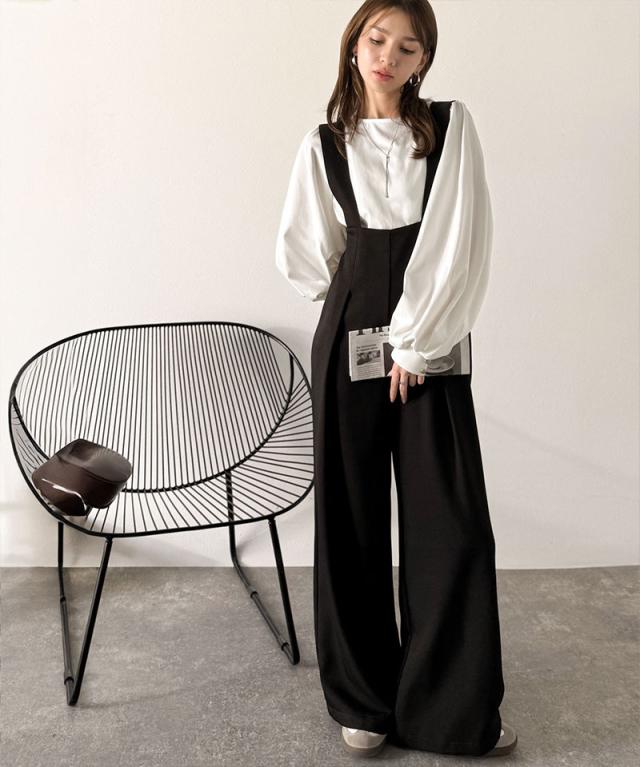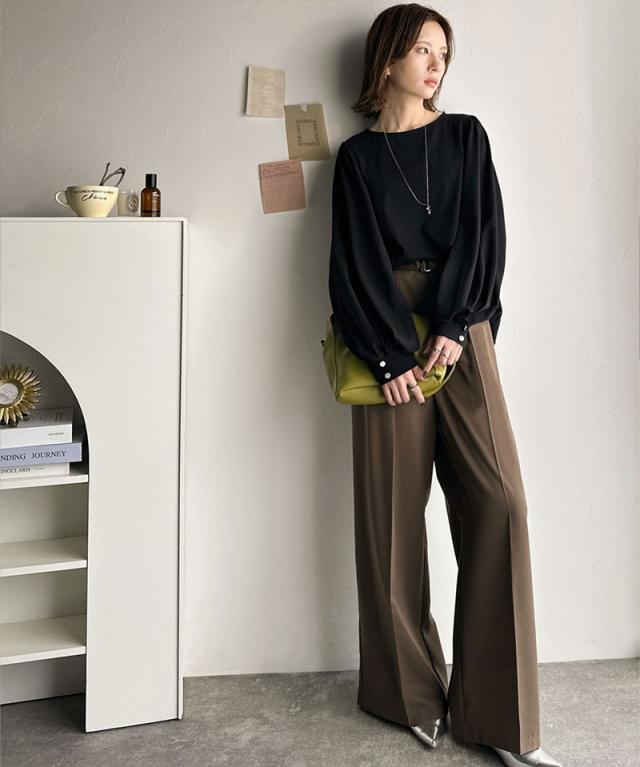 デニムやスラックスにフロントインして、袖のボリューム感を際立たせるスタイリングがおすすめです。