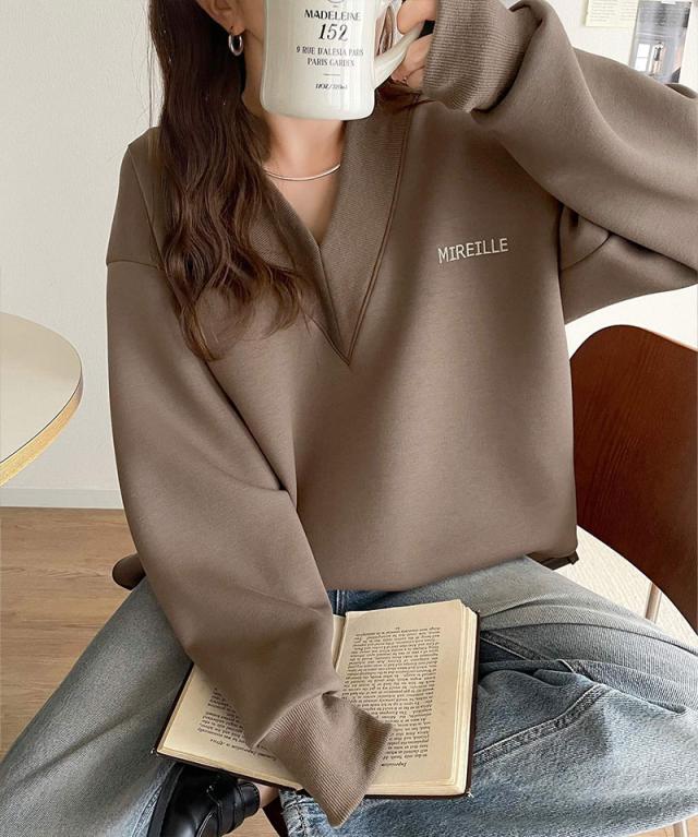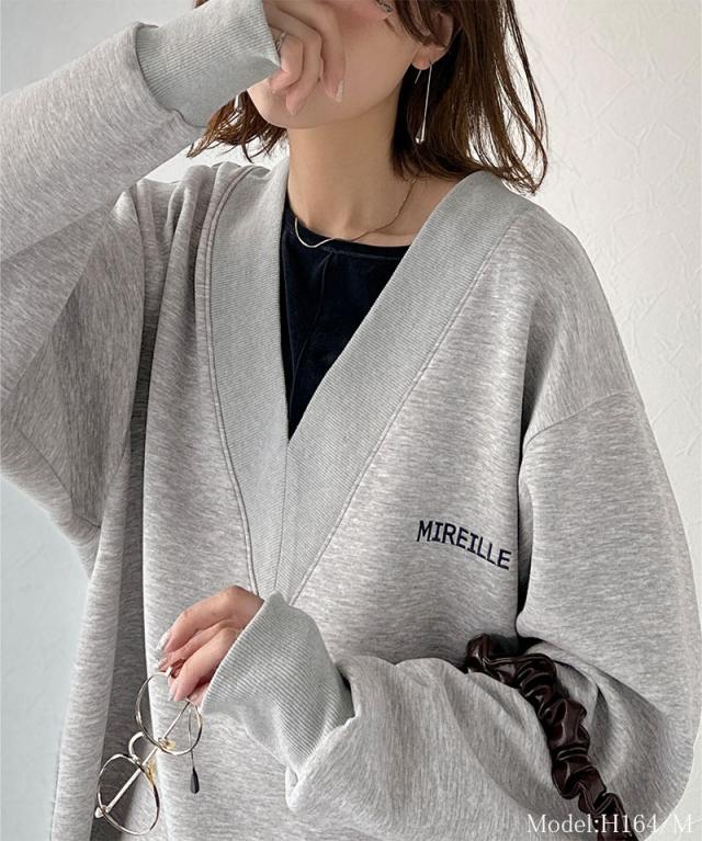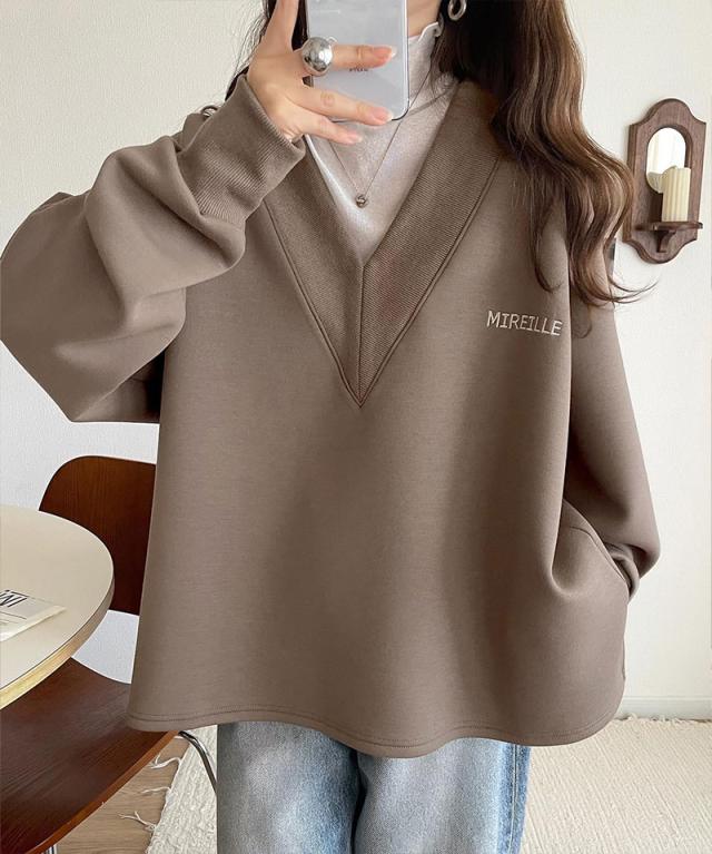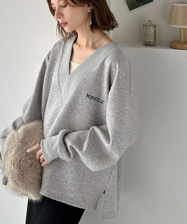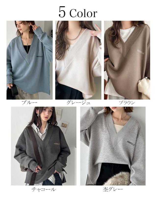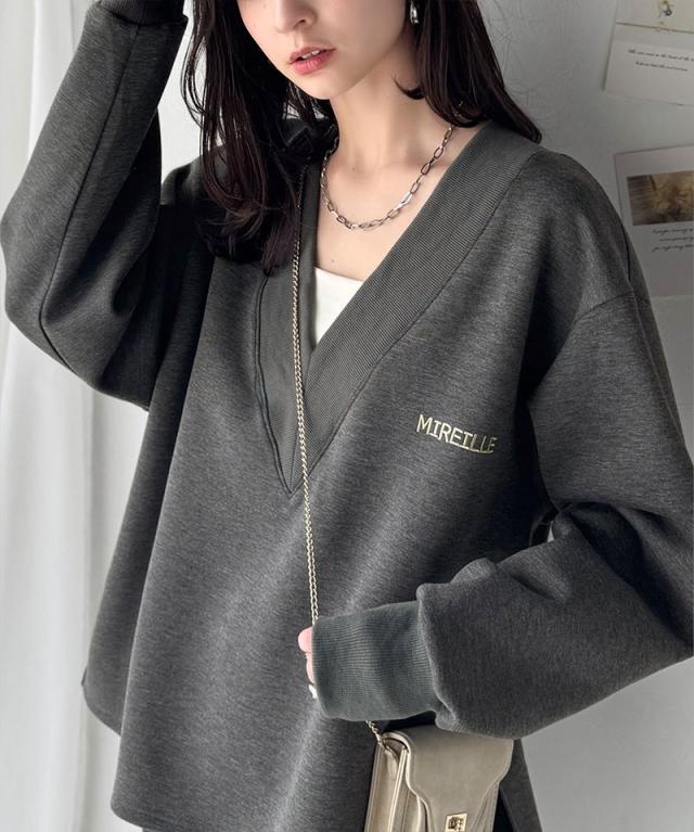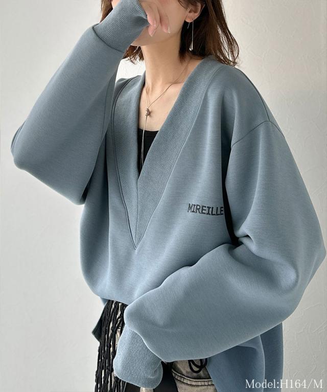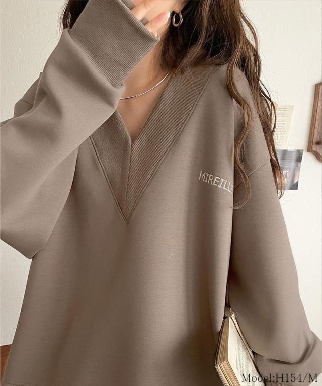 クラシカルエルフ冬新作 スウェット レディース トップス 抜け感 深め V ネック 胸 刺繍 ダンボール ニットトップス 長袖 ゆるっと オーバーサイズ 大きいサイズ 2025aw ce1110130
